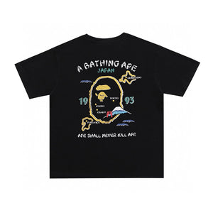 Bape T-shirt Top Version Fashion Brand Small Icon Embroidered Men's and Women's Short Sleeve T T-shirt Couple Cotton Printed round Neck Half Sleeve