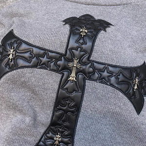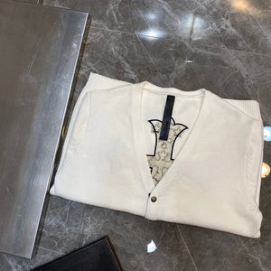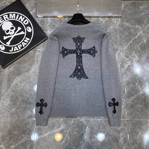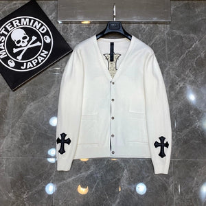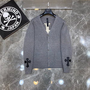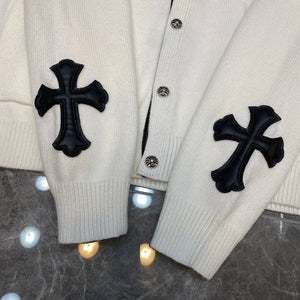 Chrome Hearts Sweater Top Version Fashion Brand V Collar Genuine Leather Cross Cardigan Sweater Men's Woolen Sweater All-Match Casual Couple Style