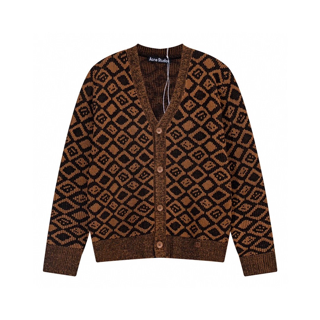 Acne Studios Sweater Top Version for Men and Women F Facial Expression Pure Wool V Collar Button Sweater Coat Knitted Cardigan