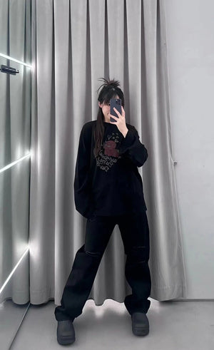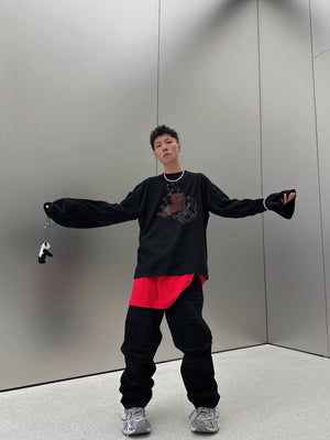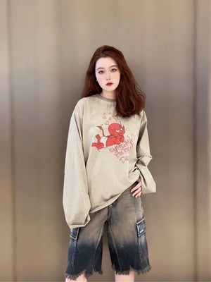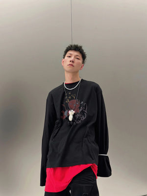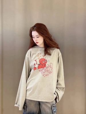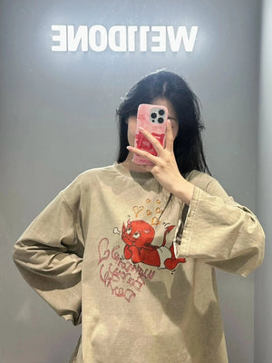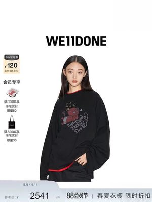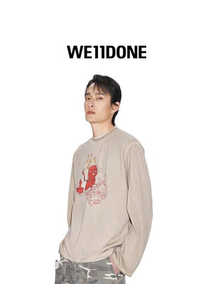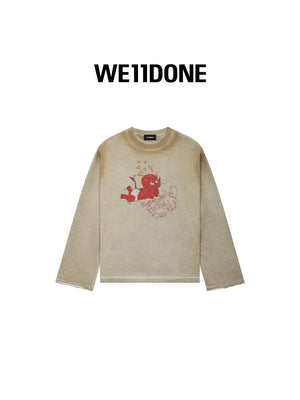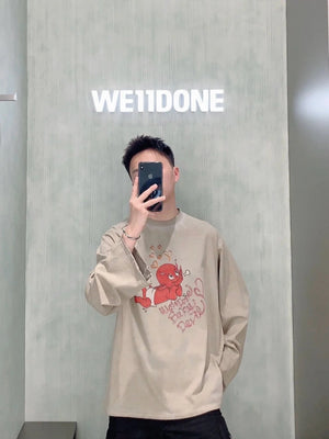 **Version We11done Men's and Women's Same Style 24 Early Spring New Little Devil Printed Long-Sleeved T-shirt before Purchase Instructions