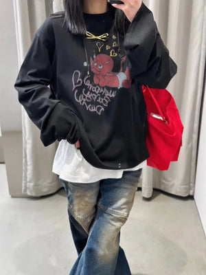 We11done Hoodie Top Version for Men and Women24Early Spring New Little Devil Printed Long Sleeve T T-shirt