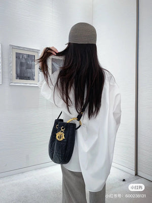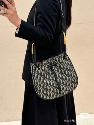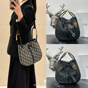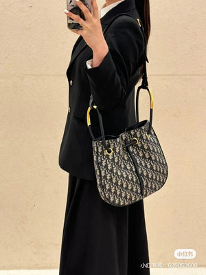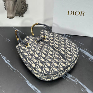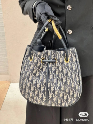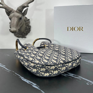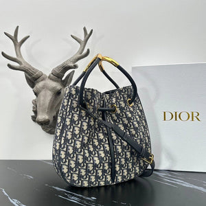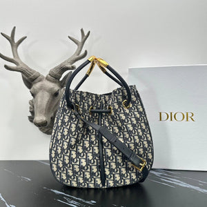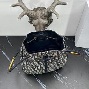Dior Women's Bag Top version 【Grade Surrogate Shopping Original Factory】24Autumn and Winter New Presbyopic Blue Embroidery Nolita Series Medium Basket Bag Single Shoulder Crossbody Women's Bag