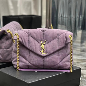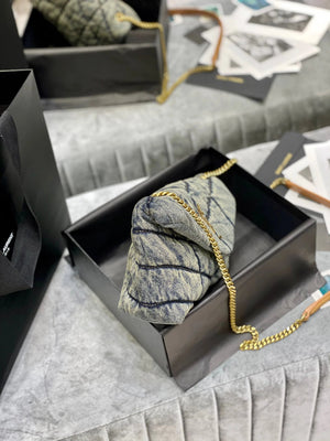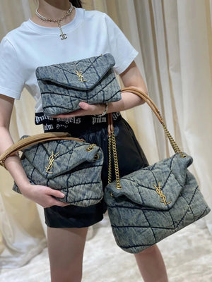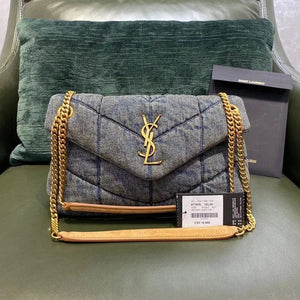 YSL Women's Bag Top version 【Grade Surrogate Shopping Original Leather】Gift for Personal Use21New LOULOUPUFFER Denim Blue Astronaut Bag Quilted Chain Bag Shoulder Messenger Bag Women's Bag577475