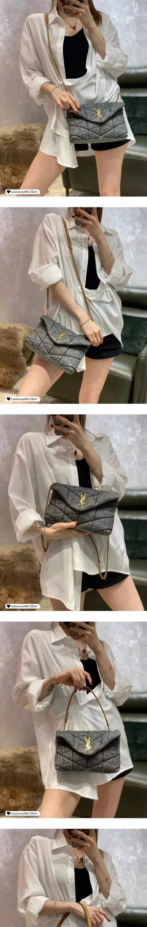 Loulou Puffer Is a Very Popular Style, Fashionable and Not Afraid of Being out of Date. It Is Definitely a Bag That Can Only Be Put in Bag Cabinet. Denim Cloth Pattern 35cm/29cm/23cm 100.00cm-Inch Size Comparison ZP? There Will Be Deviation in the Washing Effect Every Time of the F3! The Same Is True for Genuine Goods, Natural Effect! All Denim Fabrics Are Washed with Environmentally Friendly Washing Process. The Natural Washing Effect Is a ZP Cover with Different Shades, inside the Package, the Color of the Bottom Washing Will Have Deviation ZP the Washing Effect of Different Batches Will Also Have Color Difference Because of This Deviation, Which Makes It Full of Three-dimensional Vitality! Therefore, Don't Blindly Pursue Color Unification and Personality Effect Is the Concept Advocated by the Brand! Pre-Purchase Instructions