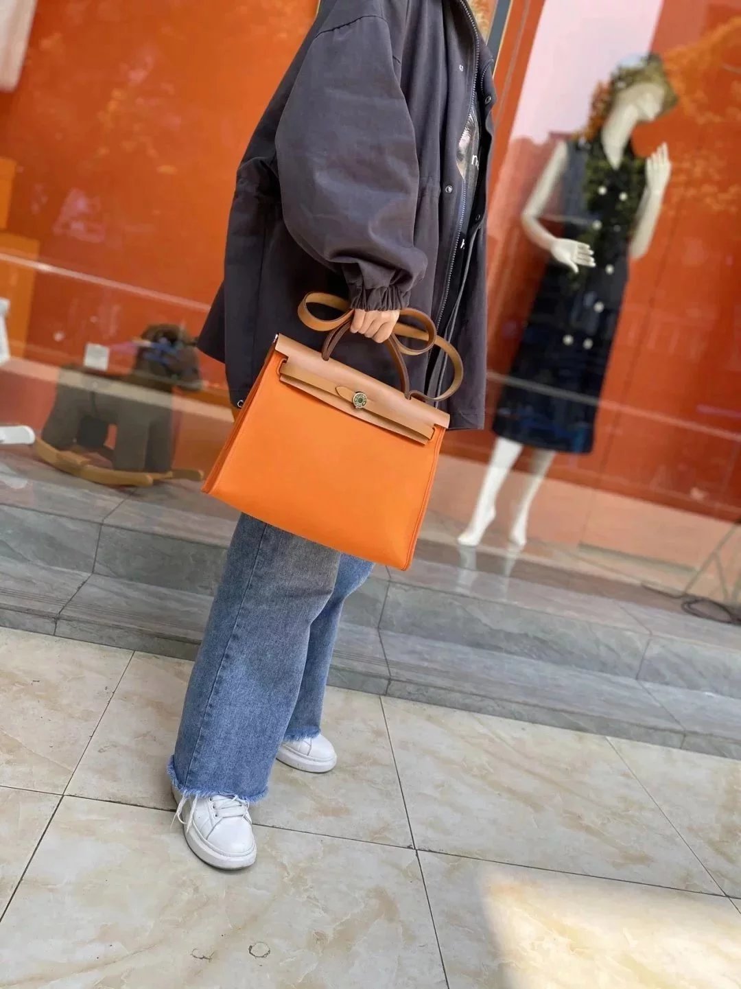 Herbag 31cm (the Most Academic Bag for Men and Women: Her Bag) the Detailed Picture of the Upgraded Version of the Real Shot Has One More Attached Bag than the Prototype Kelly, but It Is Lighter than the Whole Leather. the Whole Bag Can Be Completely Disassembled and Dispersed. It Is Very Suitable for Cleaning (Male and Female Gods) daily Practical, Not Very Exaggerated, Very Low-Key, All-Matching Fashion, Not Dull, It Belongs to Hermes Entry-Level Original Original Steel Custom Exclusive French Original Leather Imported Double High Three-Dimensional Waterproof Canvas Material in Addition, There Is a Small Bag in the Bag. It Is Convenient and Easy to Store Lipstick Keys, Cosmetics and Cash. In Addition, There Are Different Craftsman's Annual Production Marks Made in Old Craftsman. The Number Code of Each Bag Is Different, That Is to Say, the Number Owned by Each Person Is Unique and Special Pleading Customization Is Presented. The Only Identification of Herbag Art Limited Edition! The Legendary Spirit That Can Only Be Met and Cannot Be Found Opens the Street Shooting International Show for Men and Women Gods! Pre-Purchase Instructions