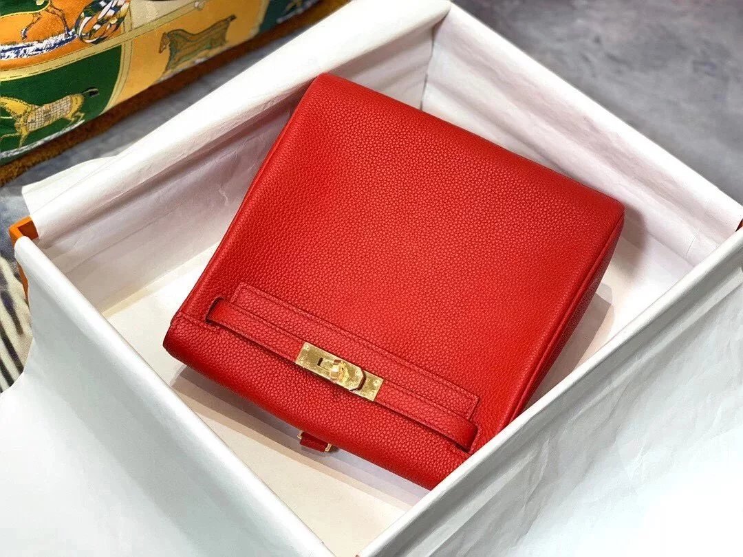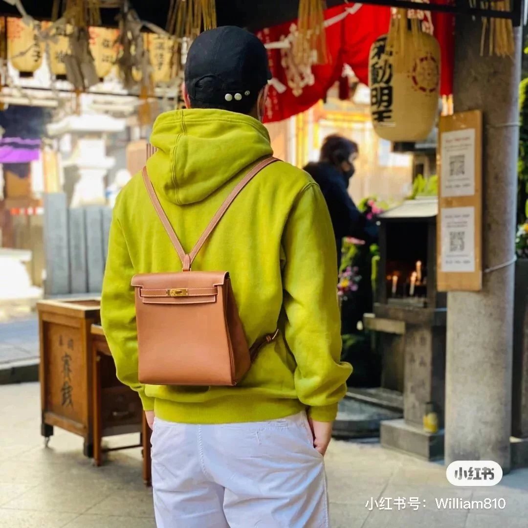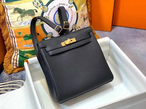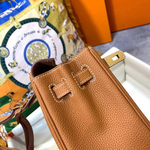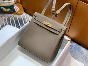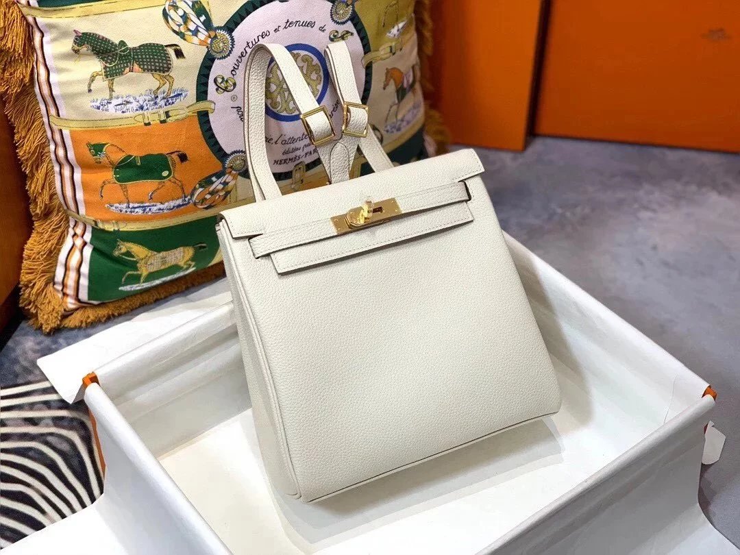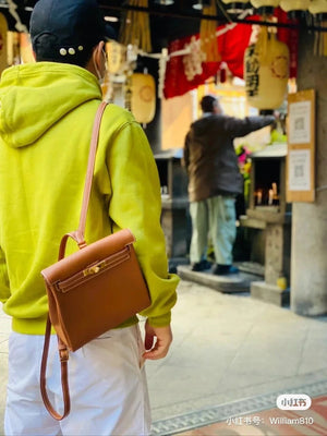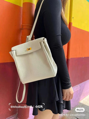 Hermes women's bag Top version h Handmade hermes High-End Backpack Backpack Men's and Women's Bag KellyAdo22cm Unisex Backpack Backpack Schoolbag Shoulder Bag Imported togo Leather Hand Sewing Wax Line