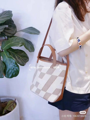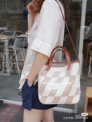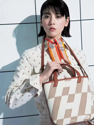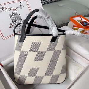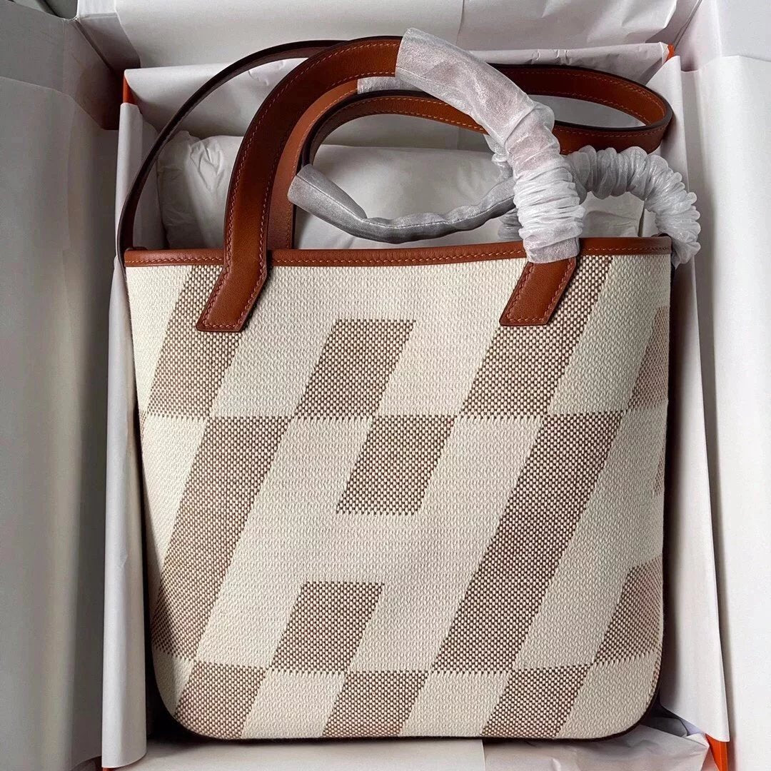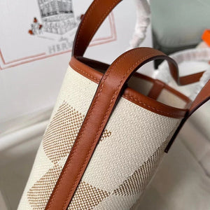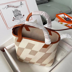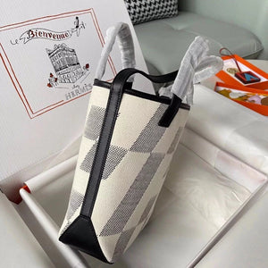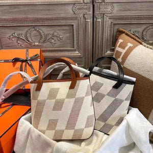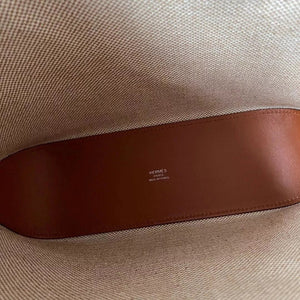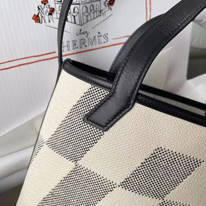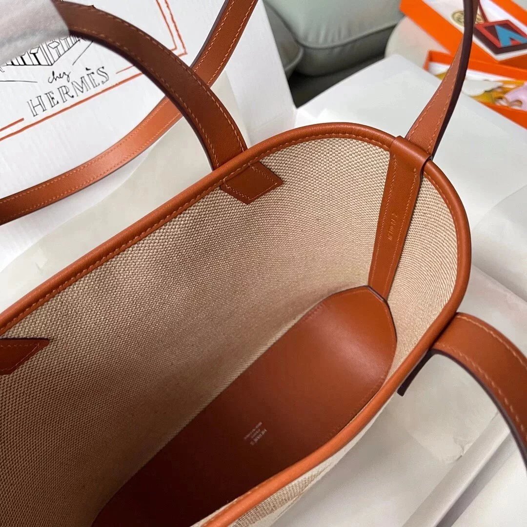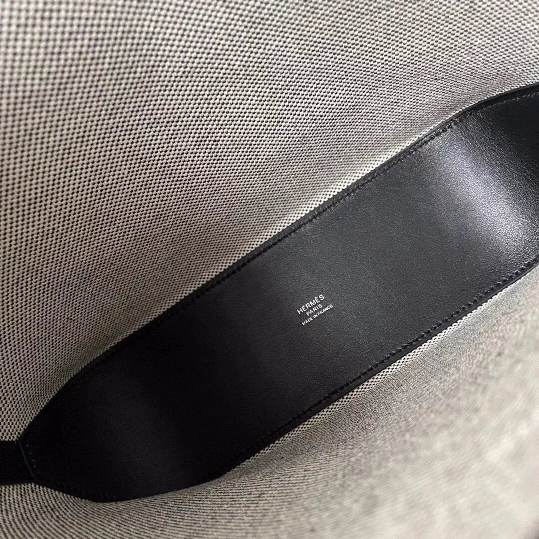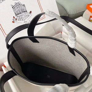 Hermes women's bag Top version Handmade cabasHenbiais27New swift Leather Canvas Twill Black Golden Brown Tote Bag