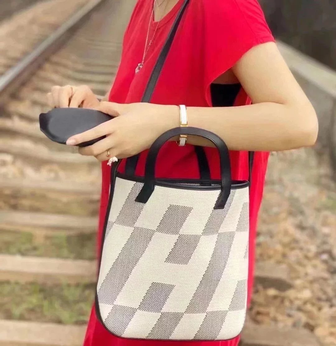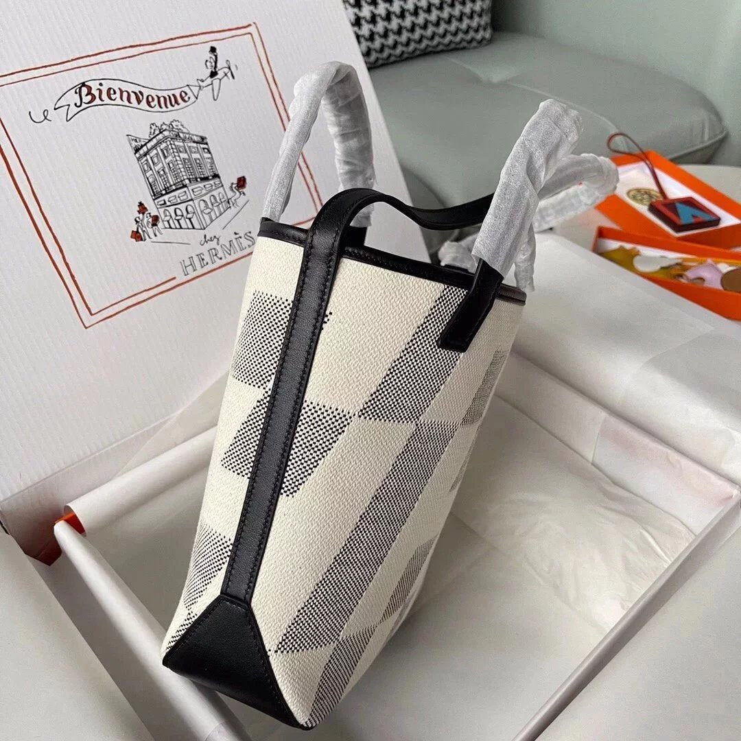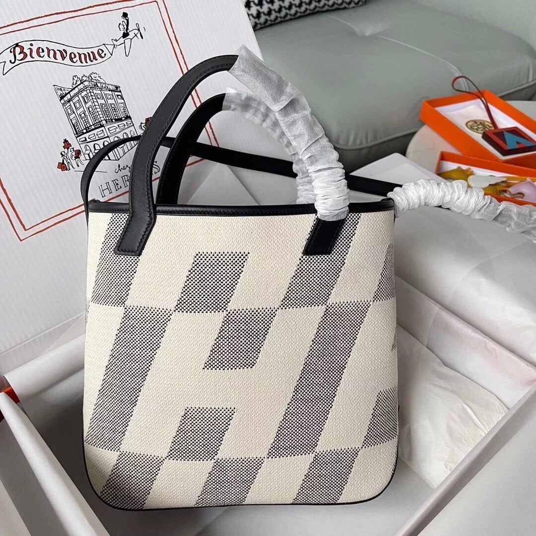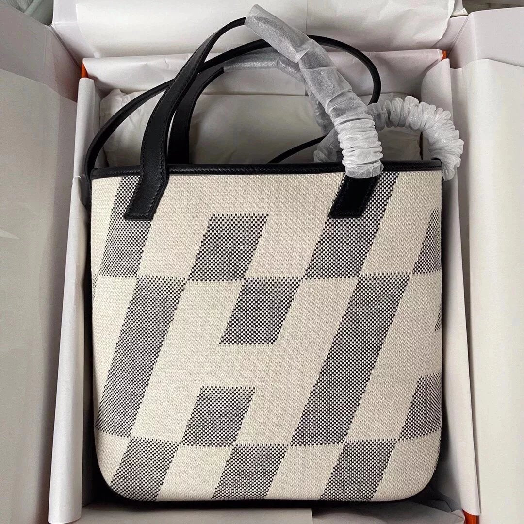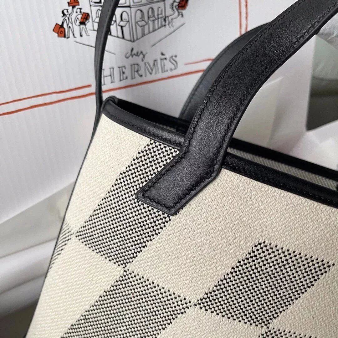 in Stock and Fast Delivery the Highest Version Biais 27cm Canvas Stitching Swift Leather Black Handmade Canvas Shopping Bag Can Be One Shoulder, Crossbody, Portable Simple and Easy to Match before Purchase Instructions