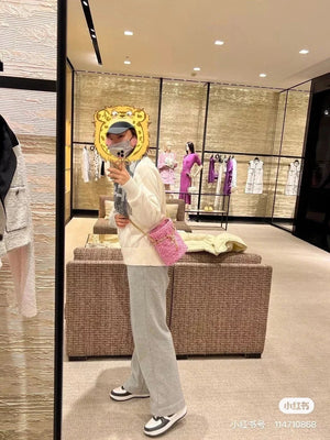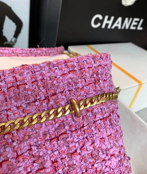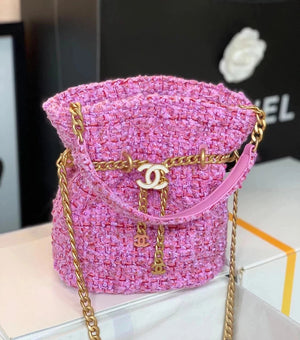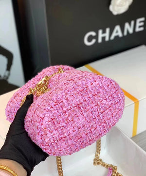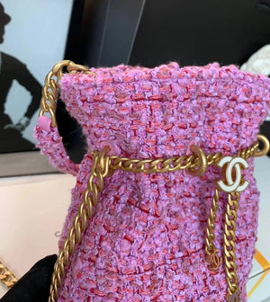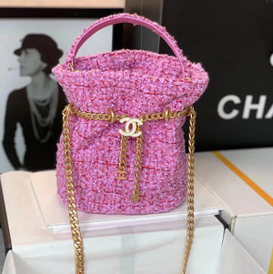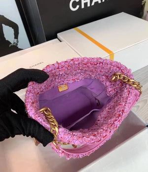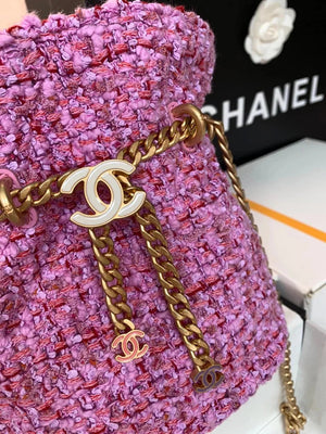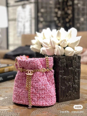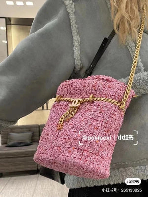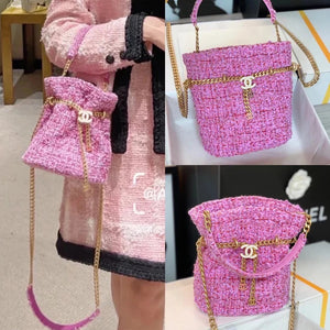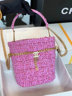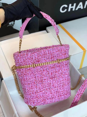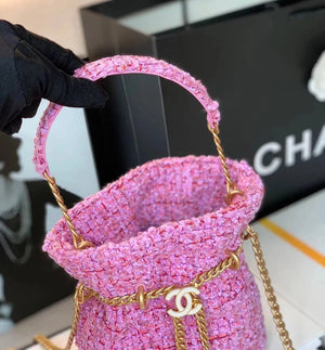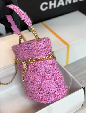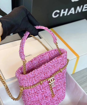 Chanel Women's Bag Top version 【High-End Version New】2022New Style Pink Woven Bucket Bag Lucky Bag Enamel Buckle Double C Handbag Coarse Woolen Handbag