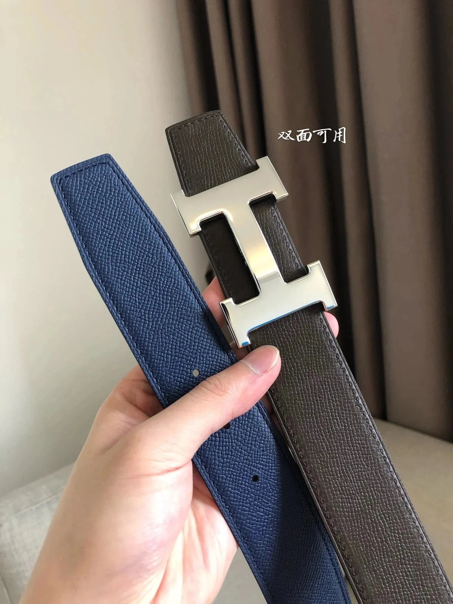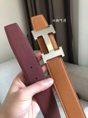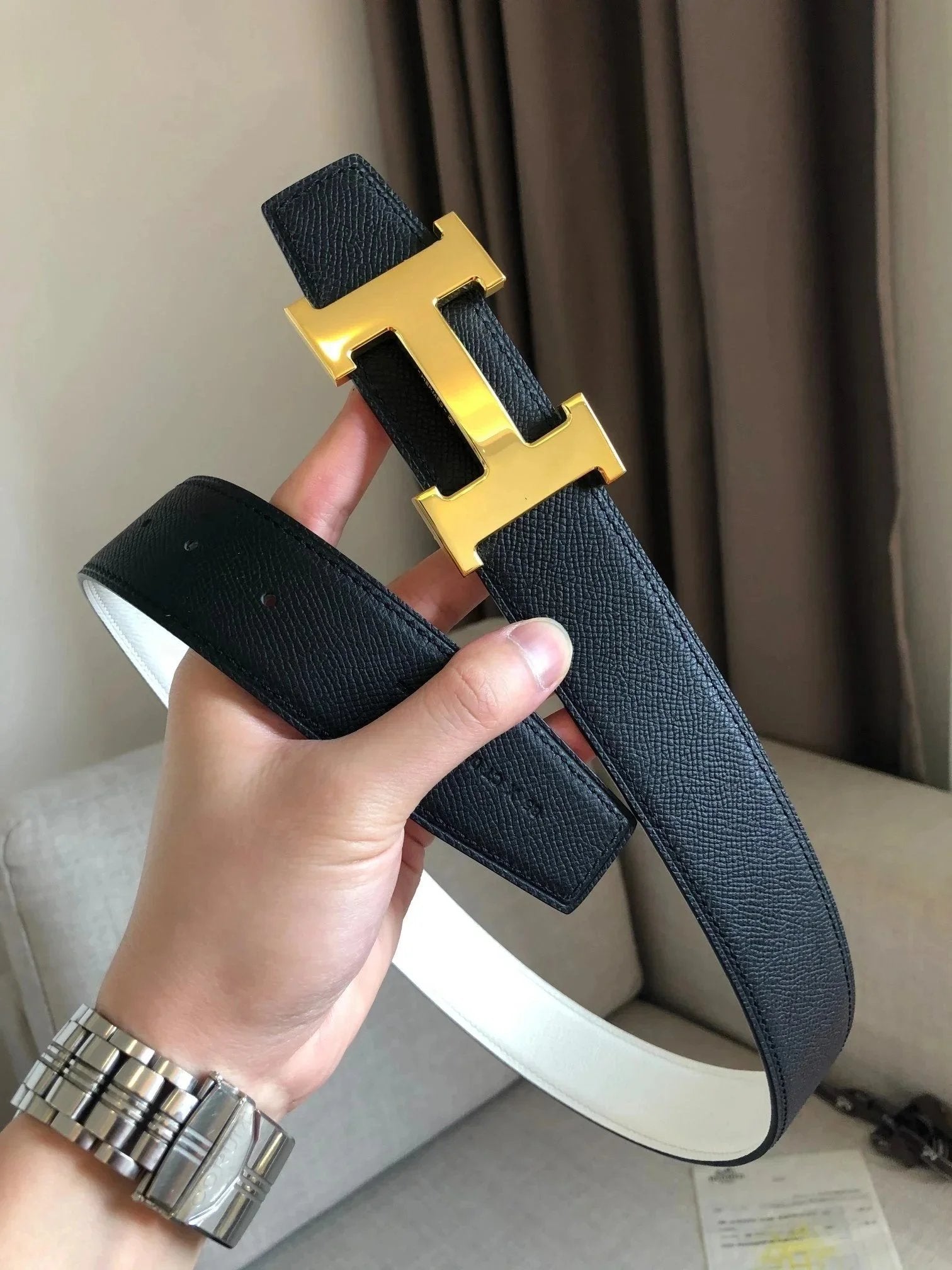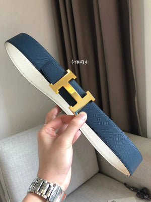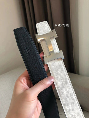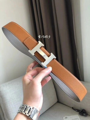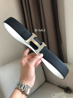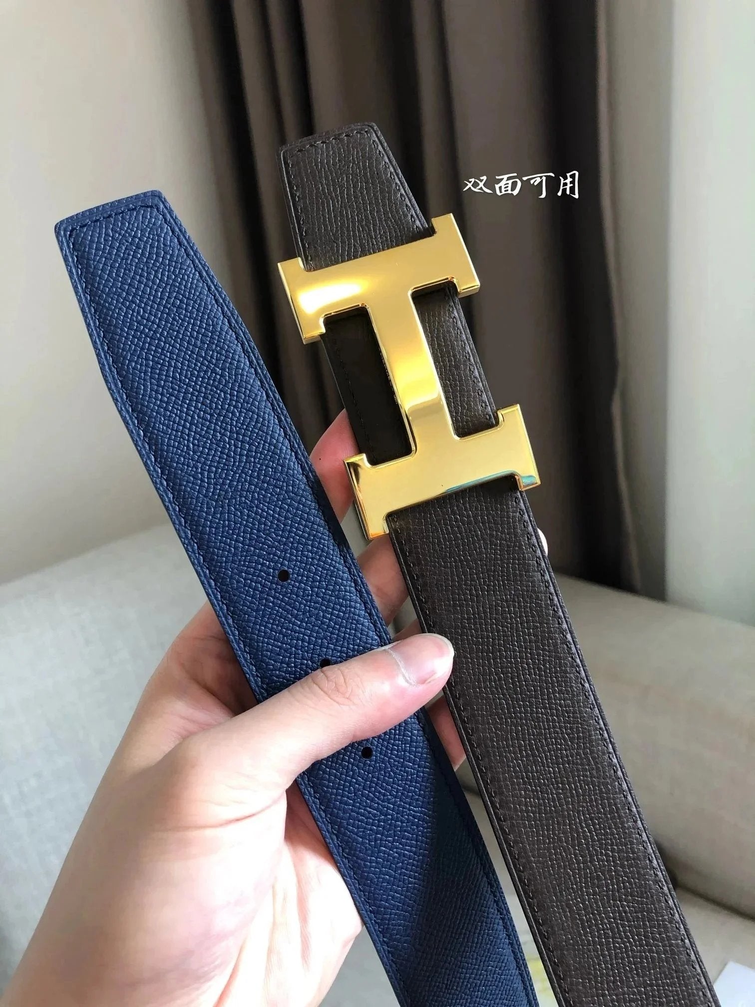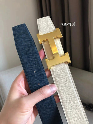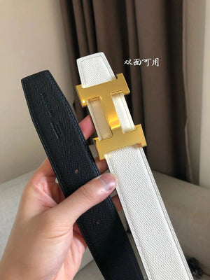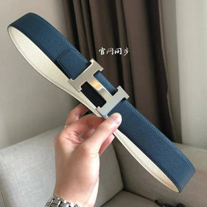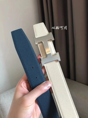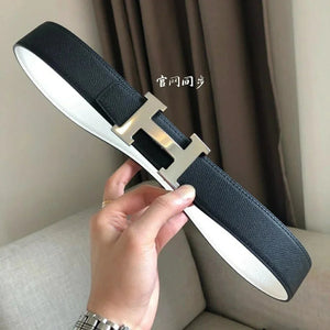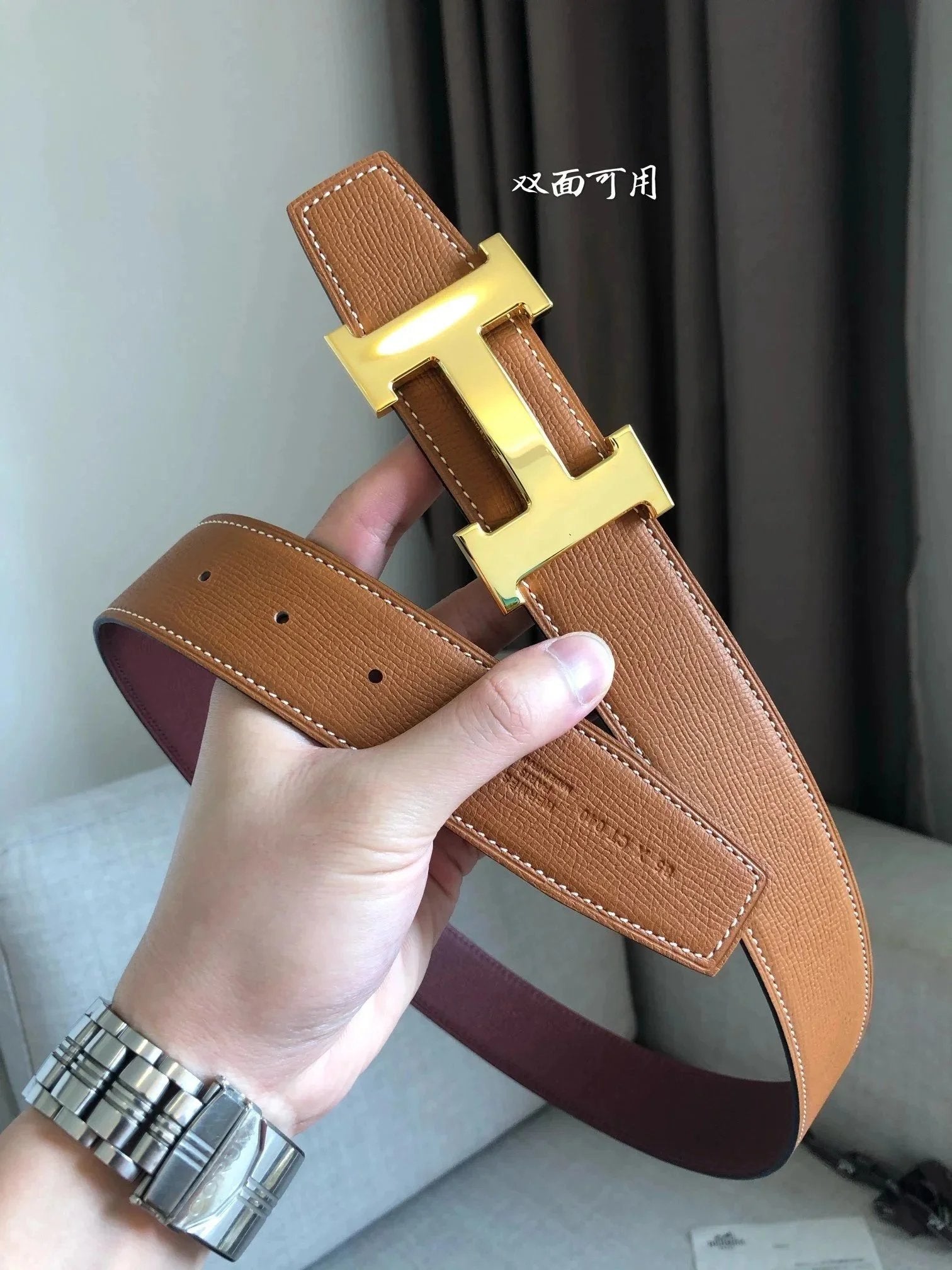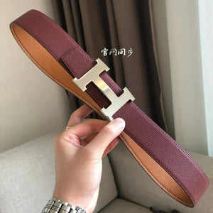 Hermes Belt Top version 【High Quality in Stock】New First Layer Cowhide Belt Men's and Women's H Buckle Business Casual Double-Sided Available Belt
