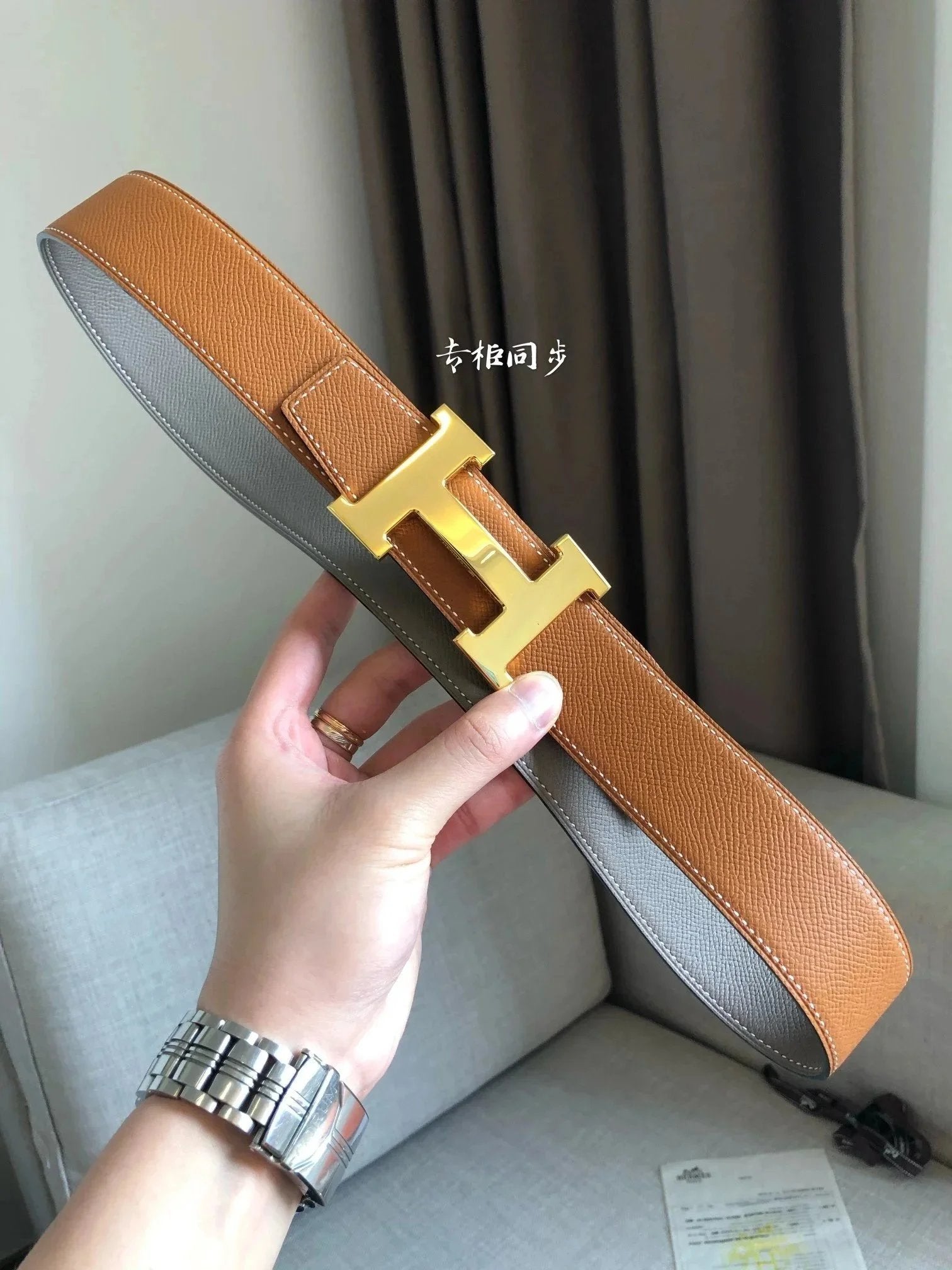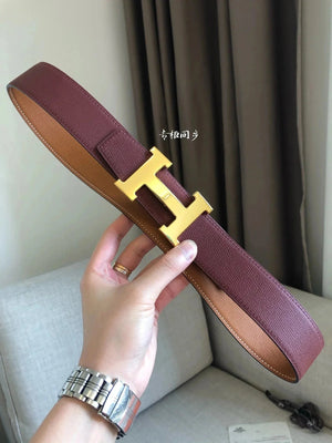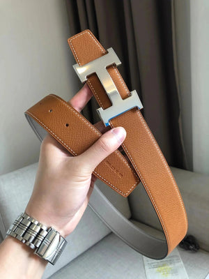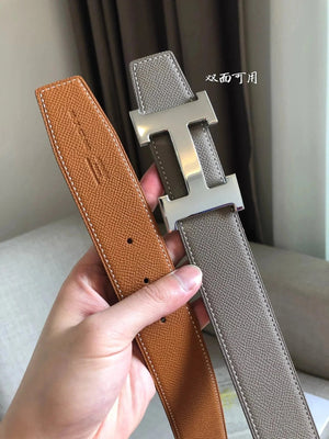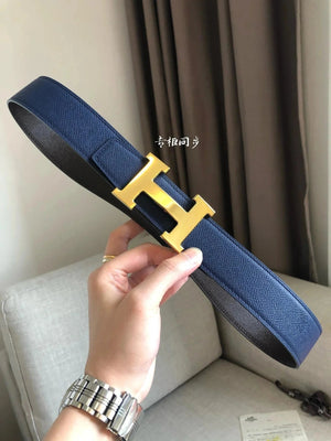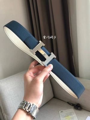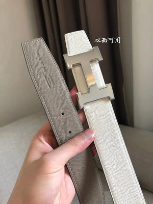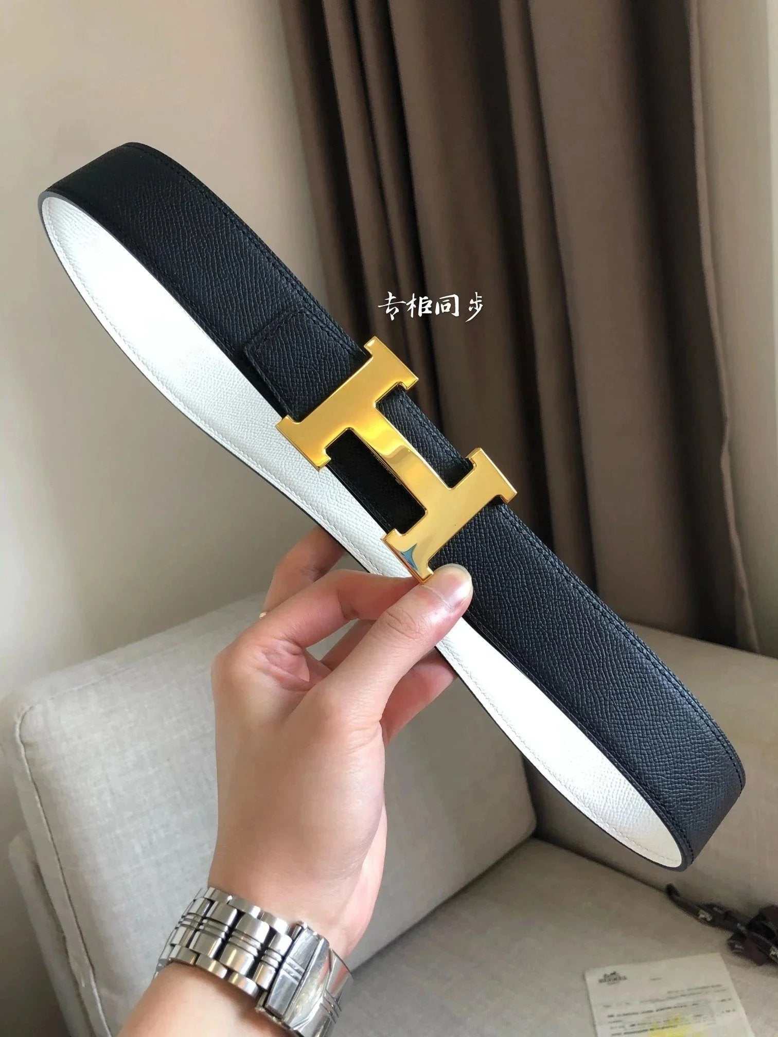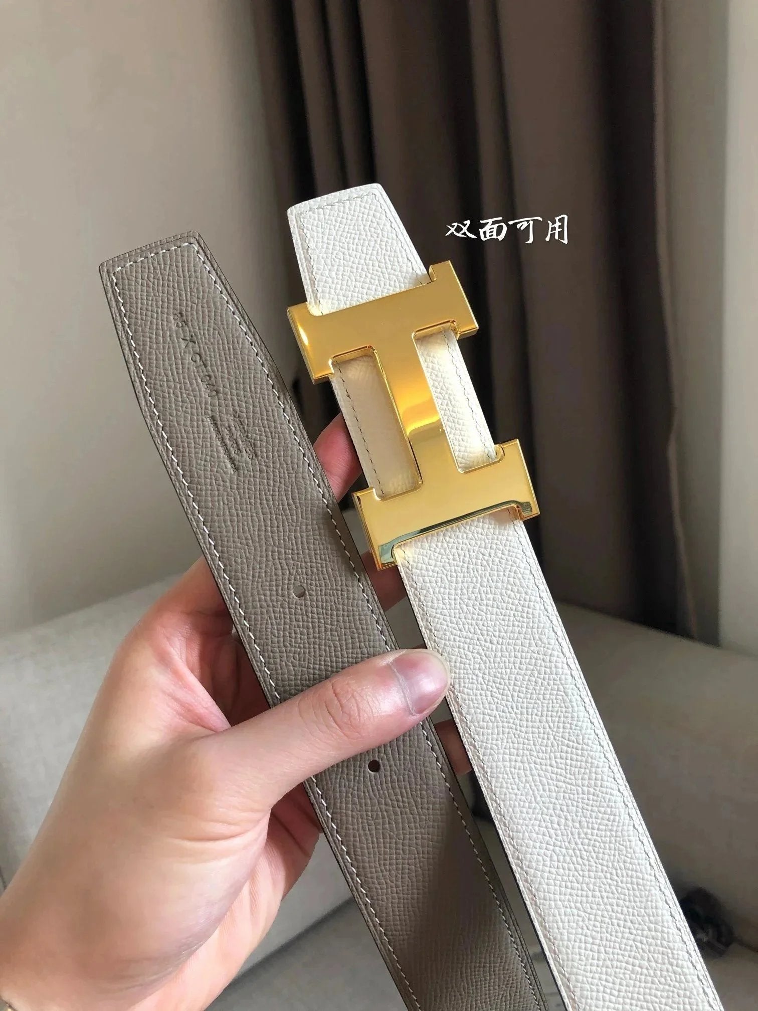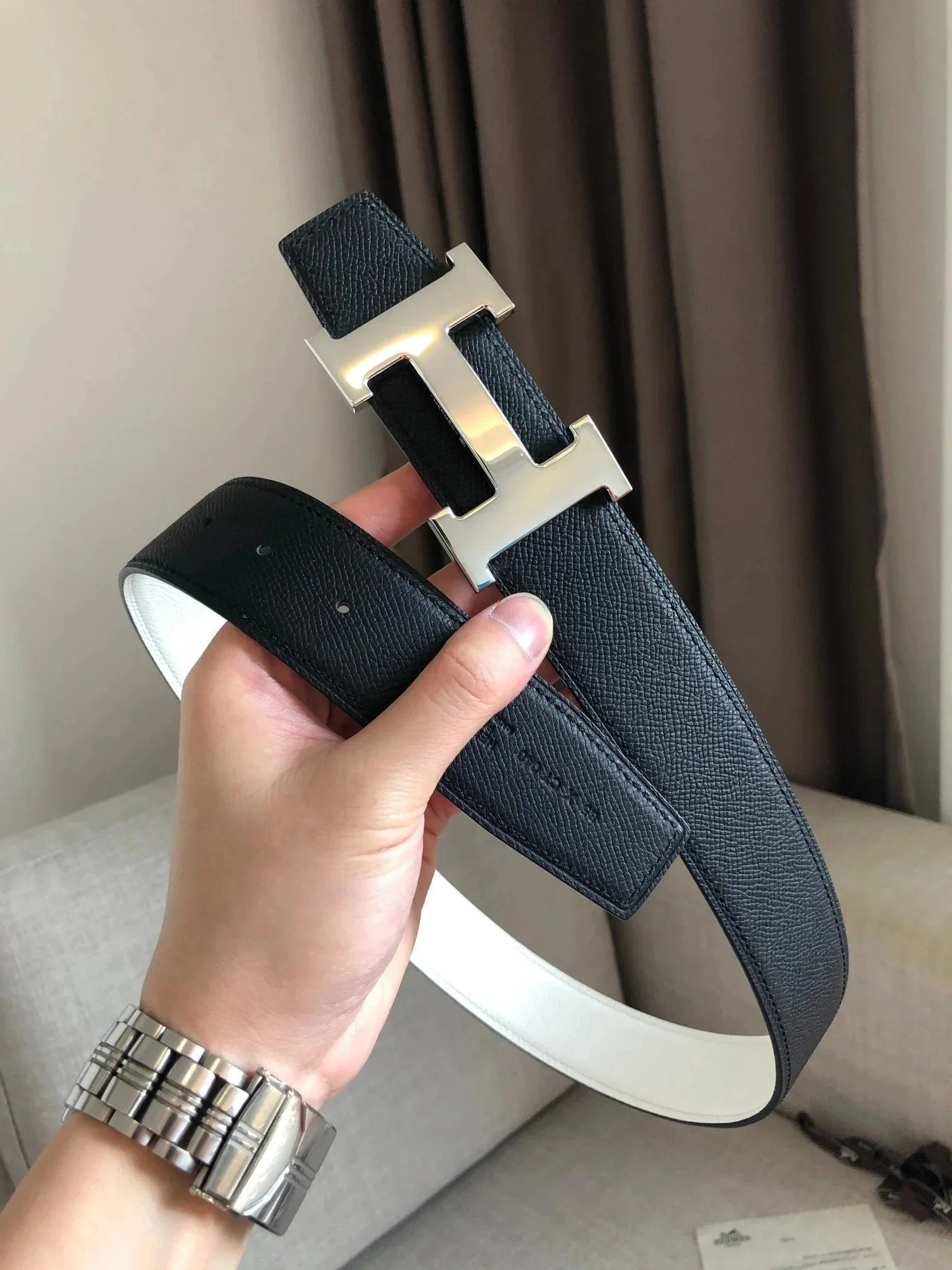 Hermes Belt Top version 【High Quality in Stock】New First Layer Cowhide Belt Men's and Women's H Buckle Business Casual Double-Sided Available Belt