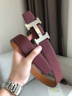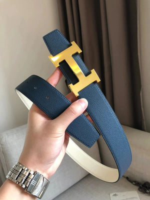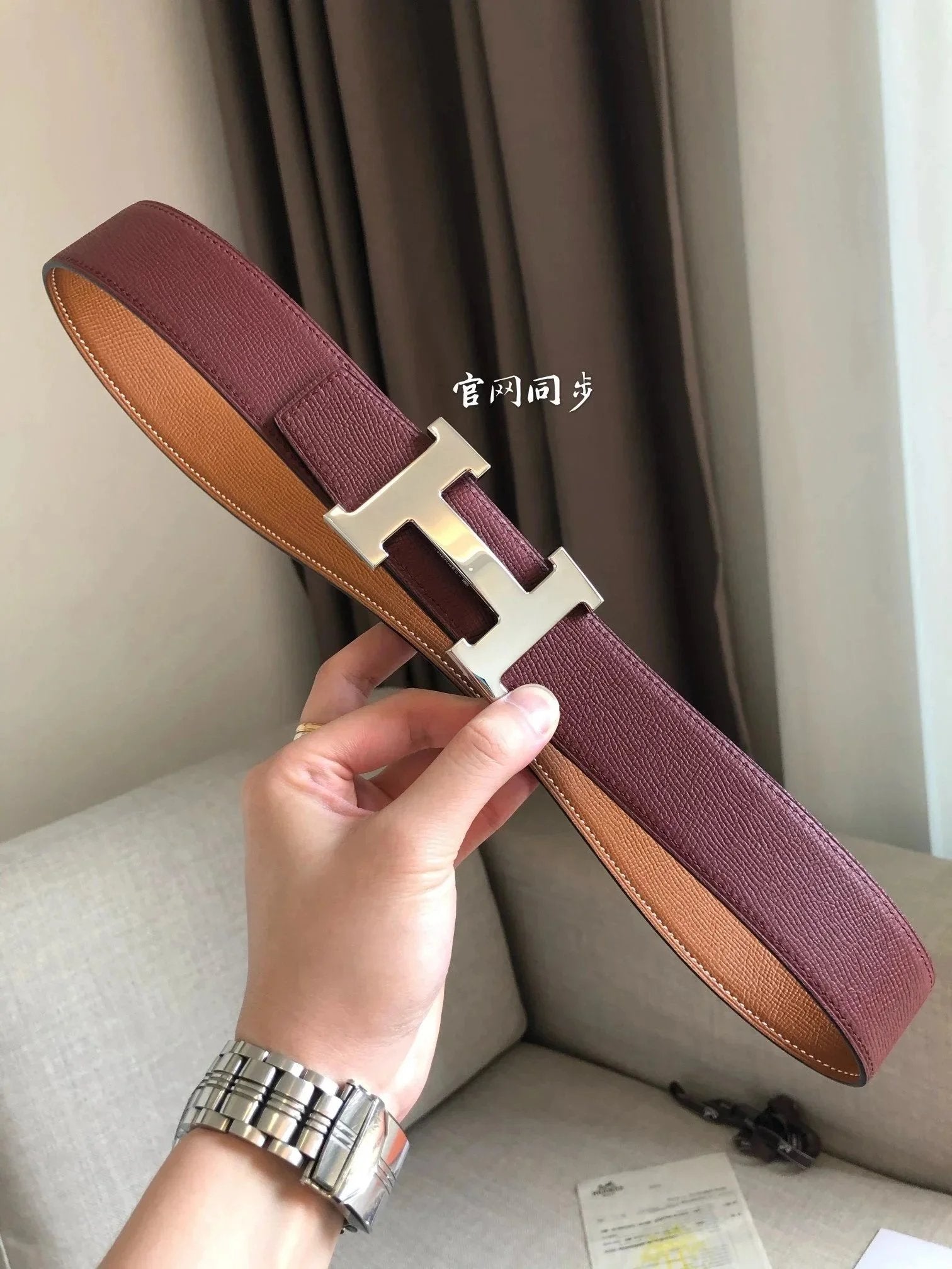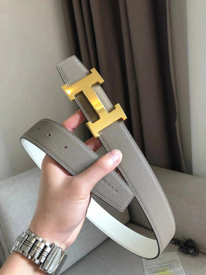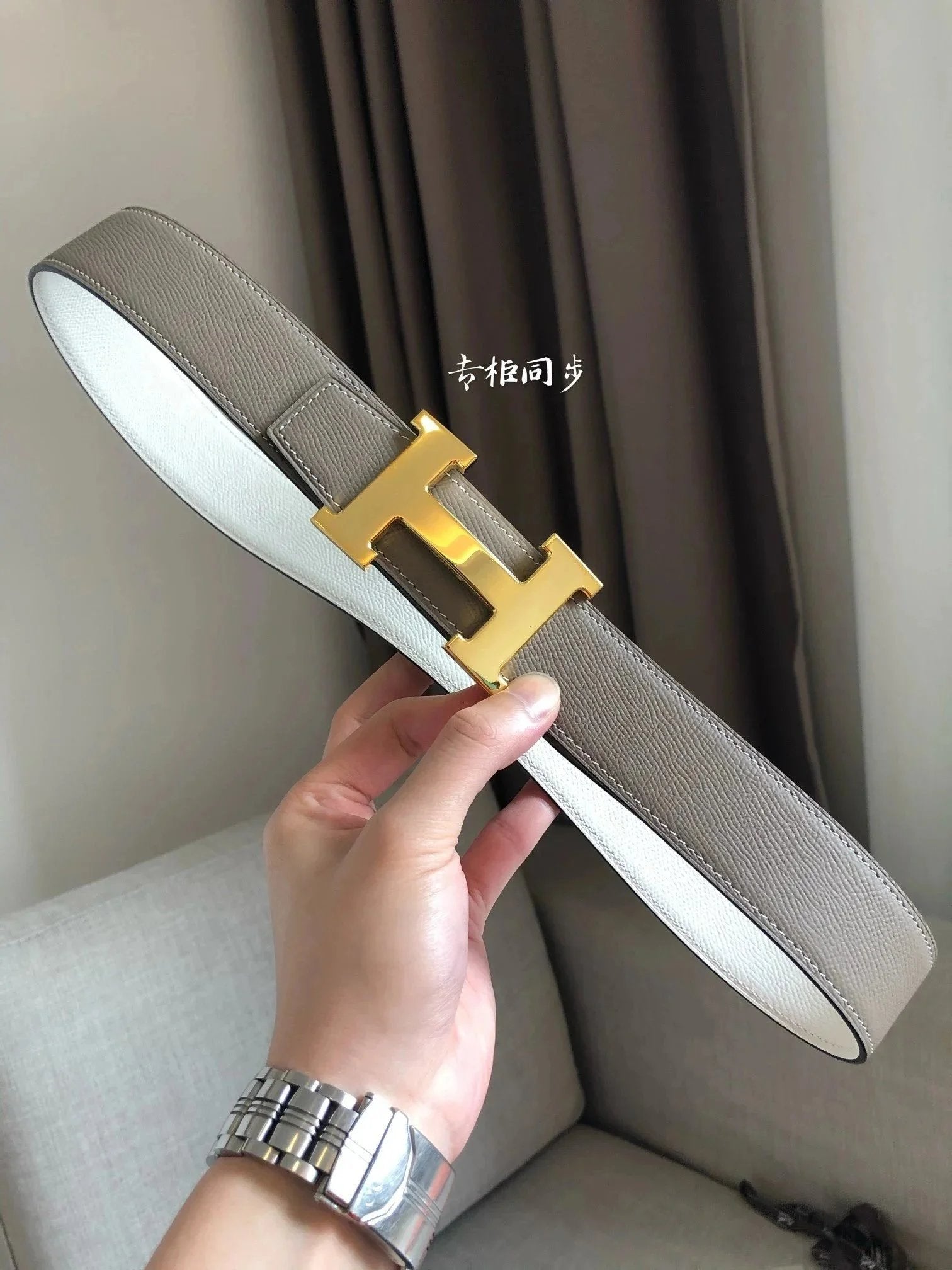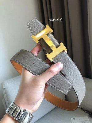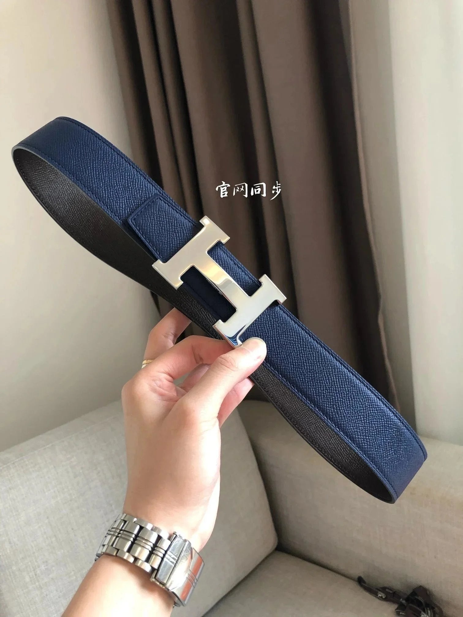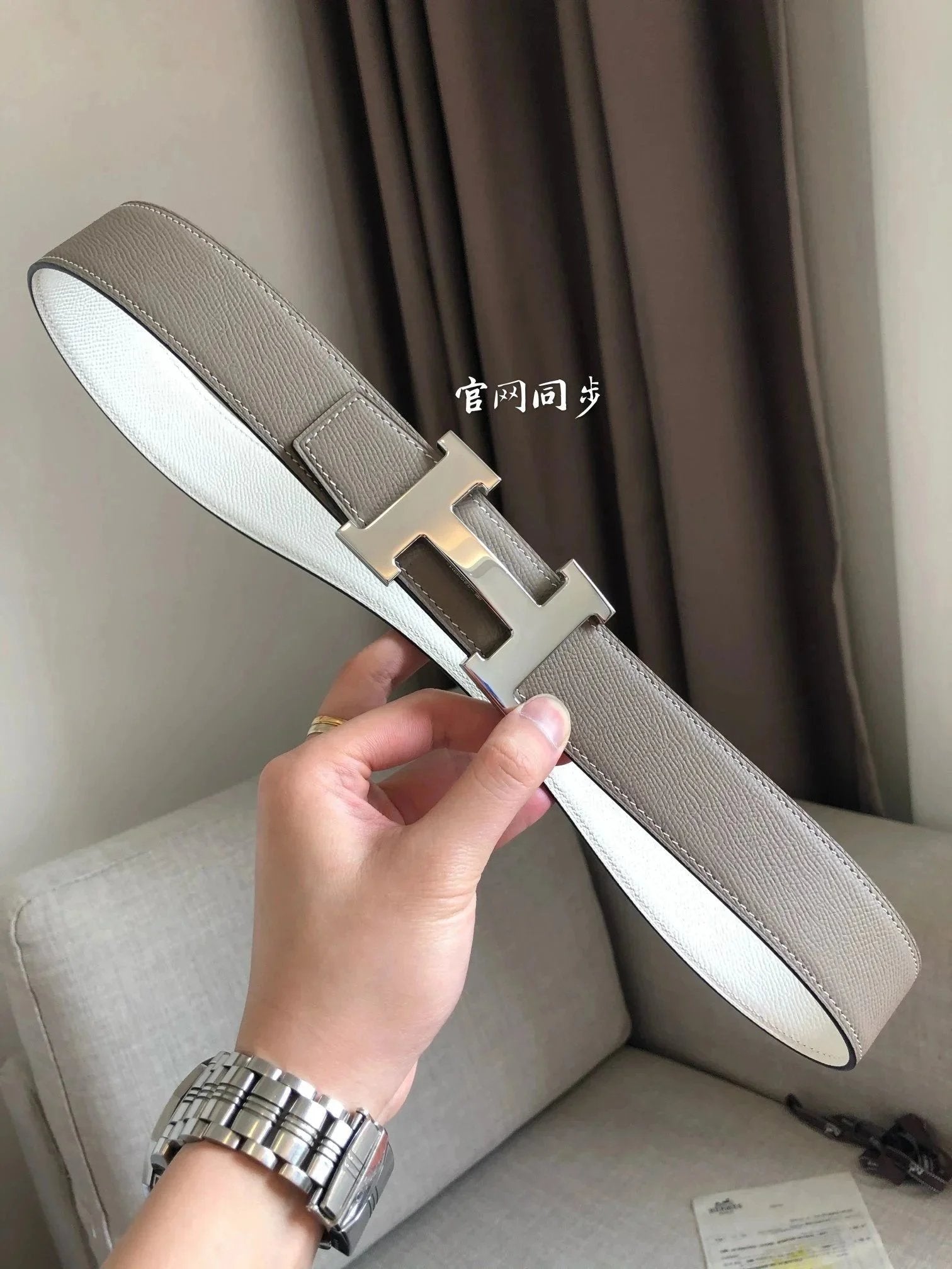 Hermes Belt Top version 【High Quality in Stock】New First Layer Cowhide Belt Men's and Women's H Buckle Business Casual Double-Sided Available Belt