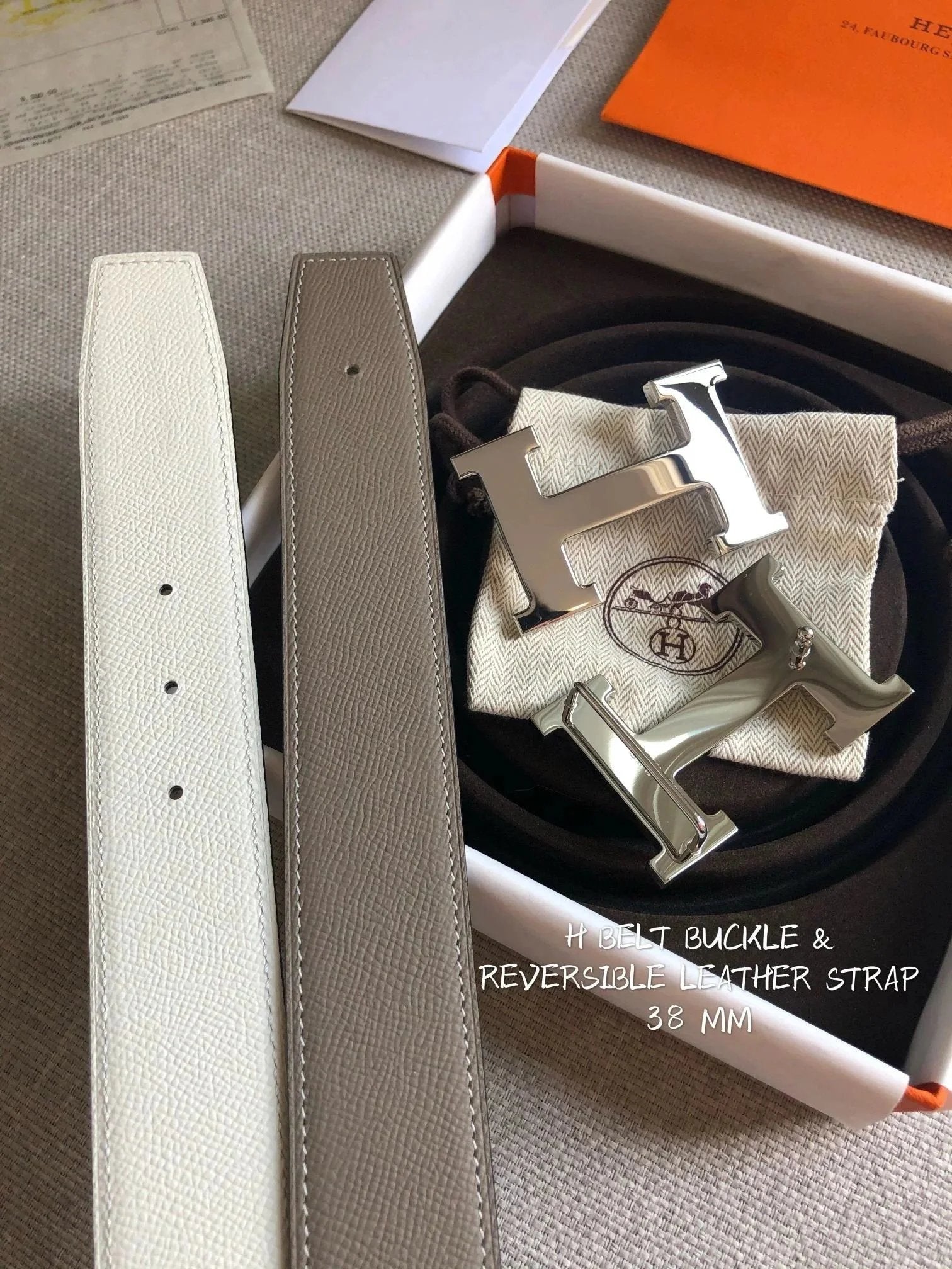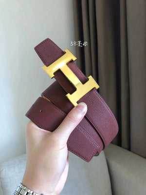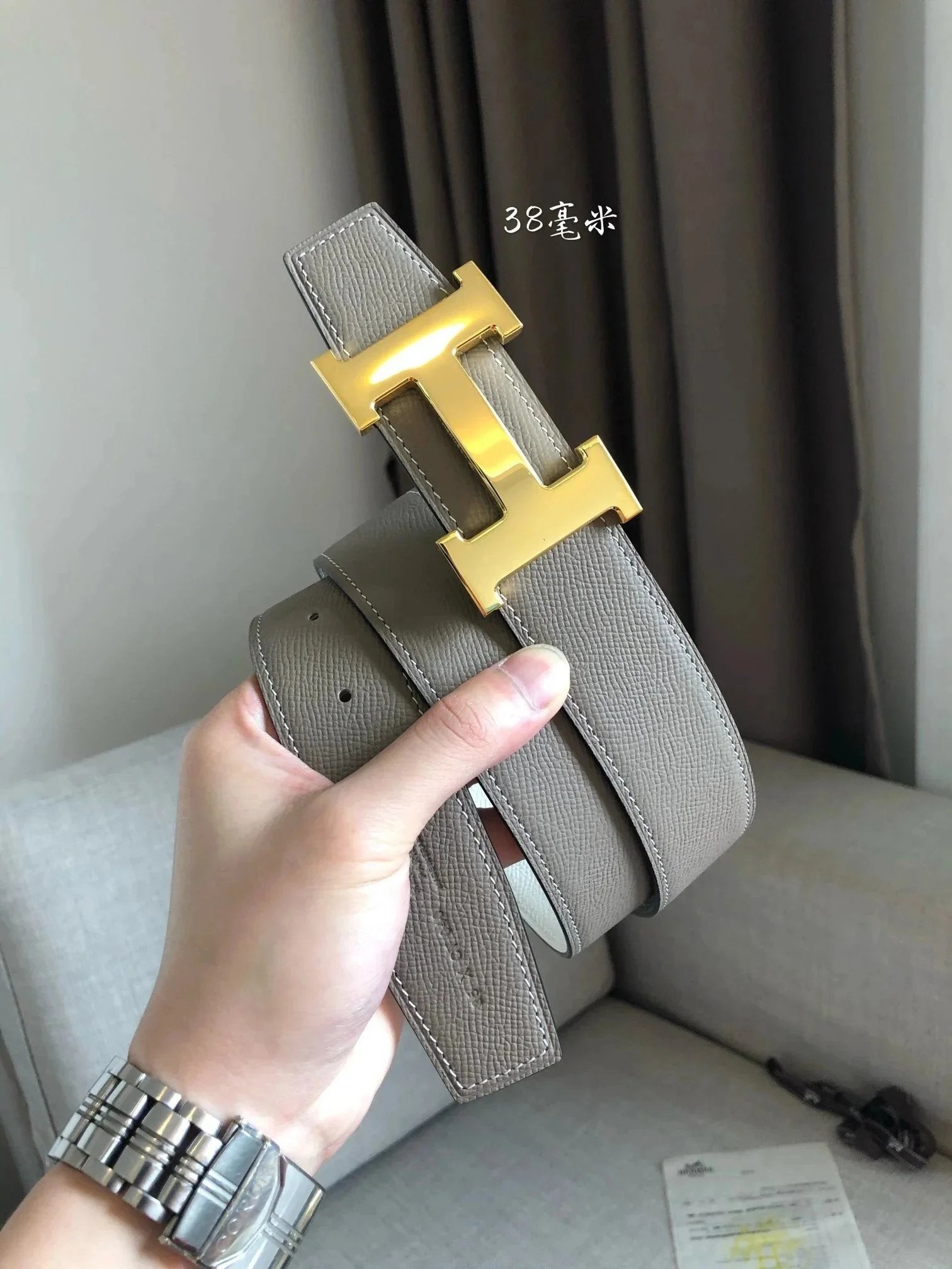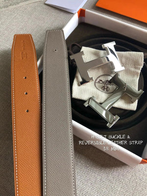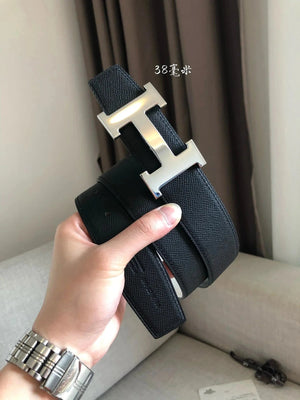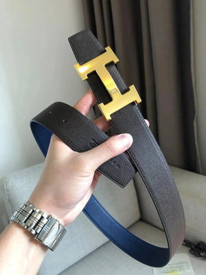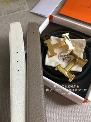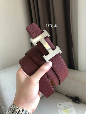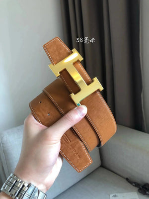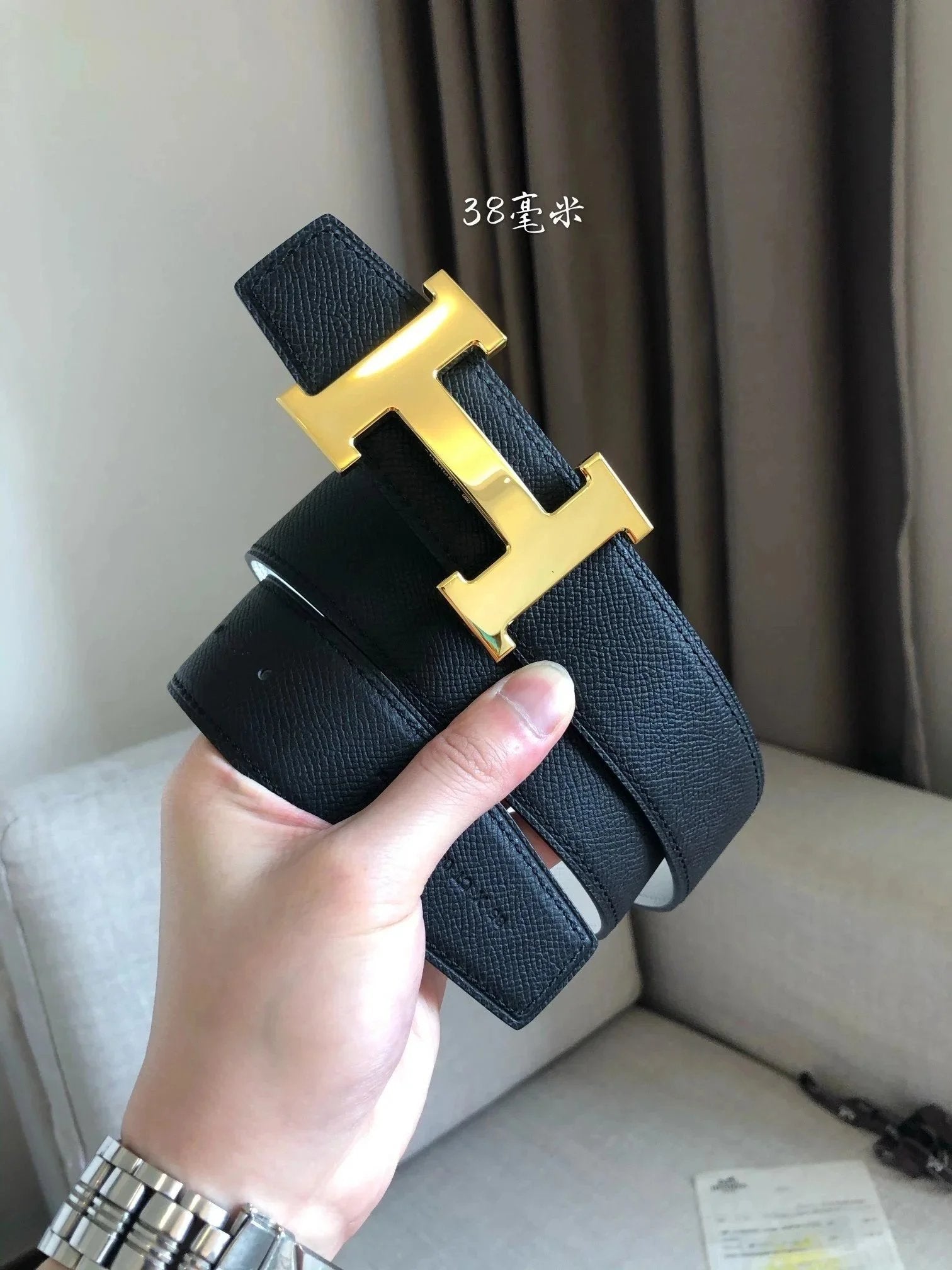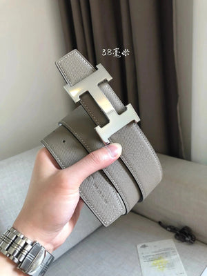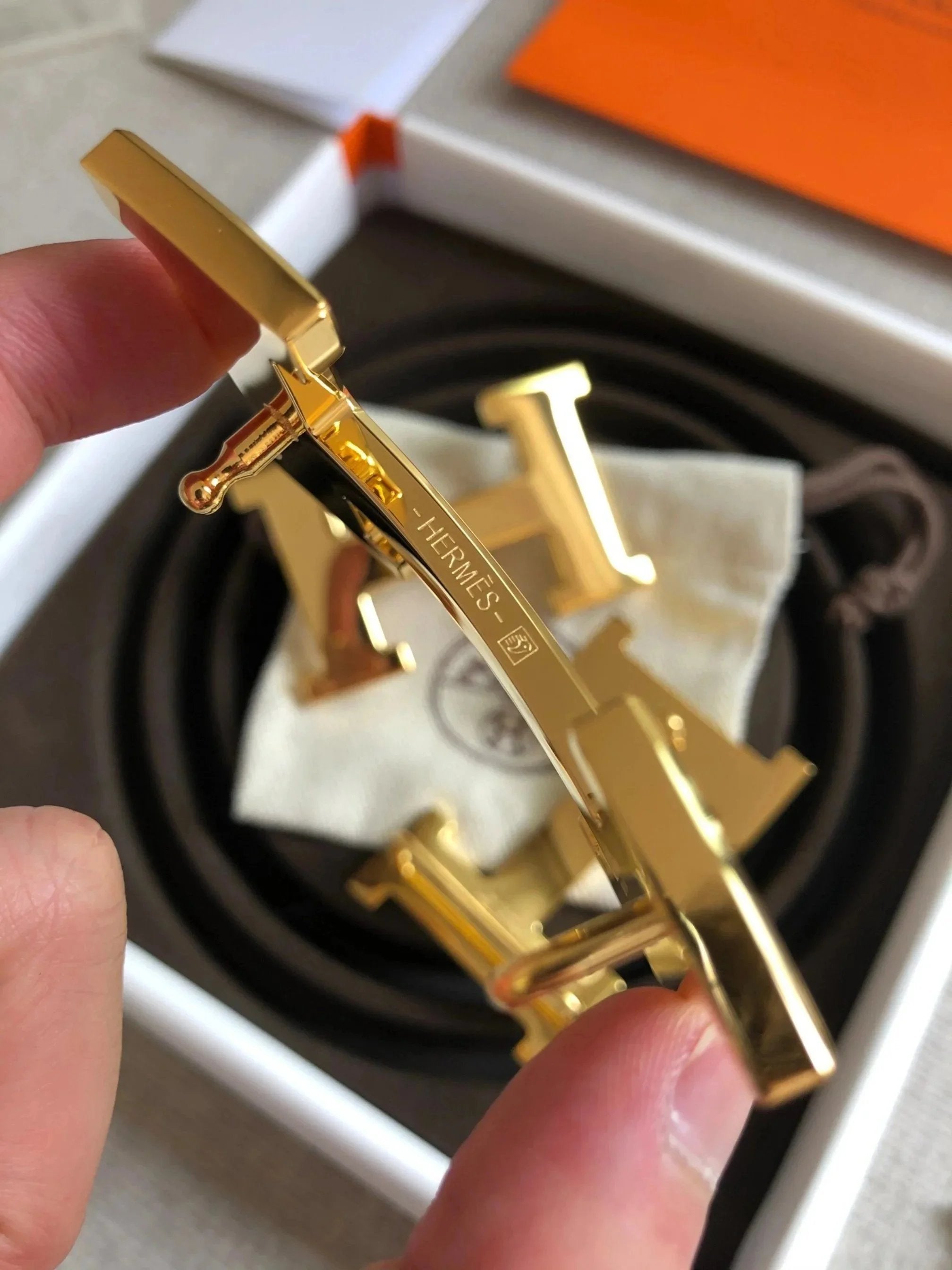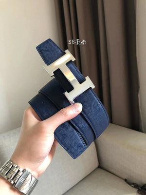 Hermes Belt Top version 【High Quality in Stock】New First Layer Cowhide Belt Men's and Women's H Buckle Business Casual Double-Sided Available Belt