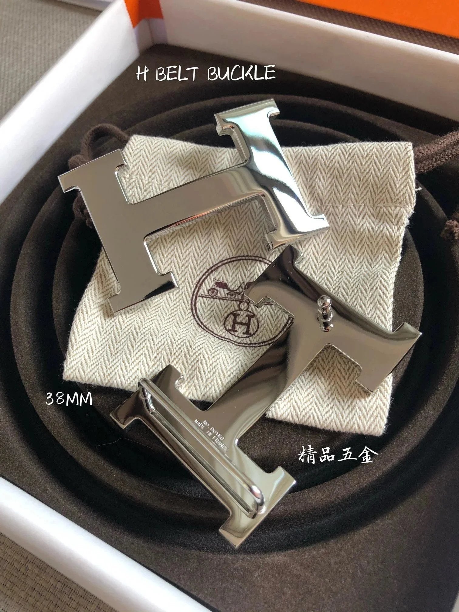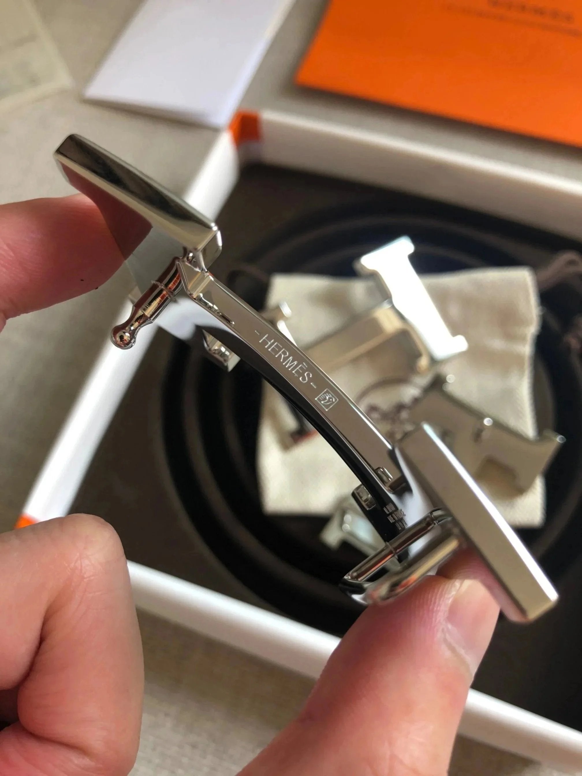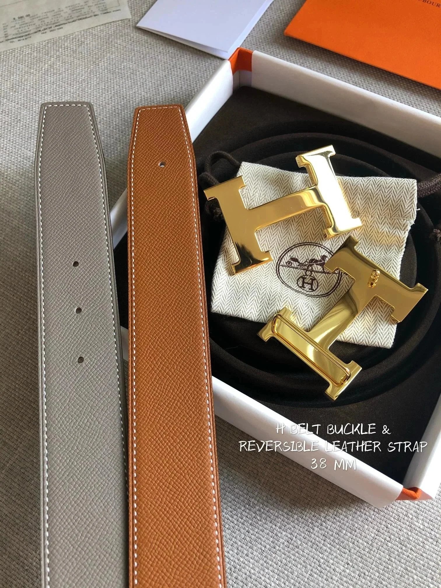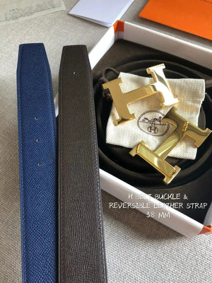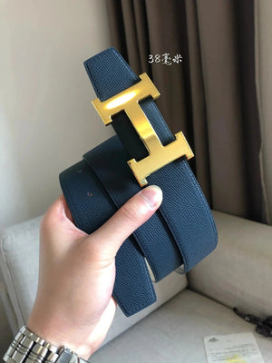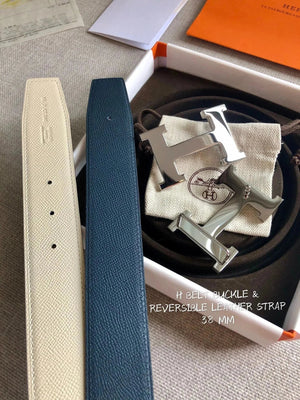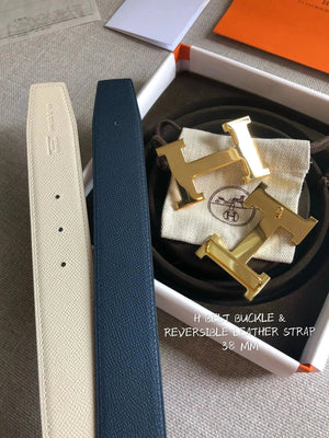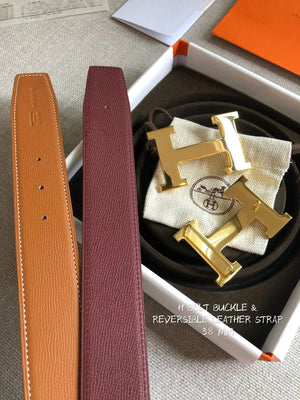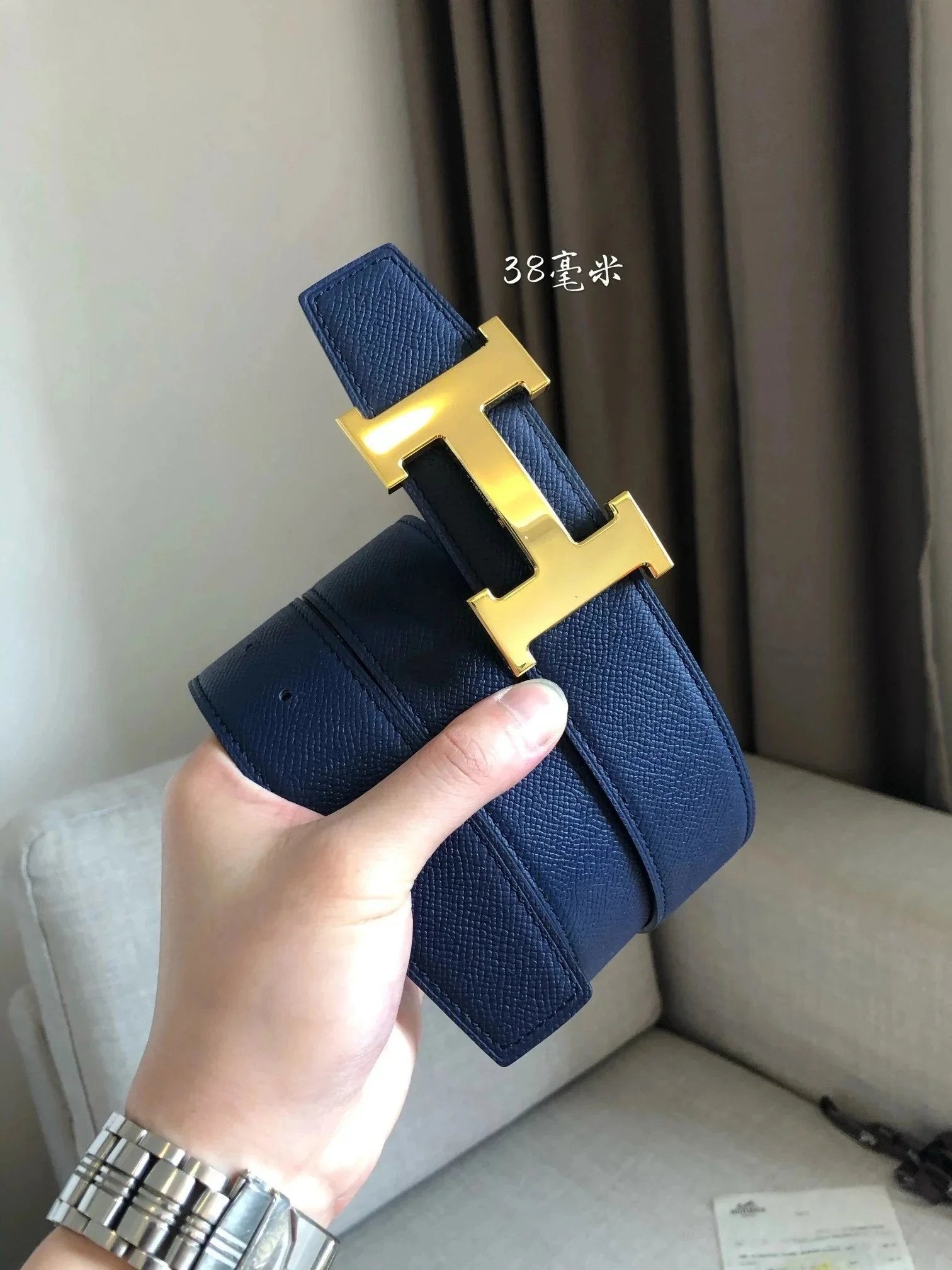 Hermes Belt Top version 【High Quality in Stock】New First Layer Cowhide Belt Men's and Women's H Buckle Business Casual Double-Sided Available Belt