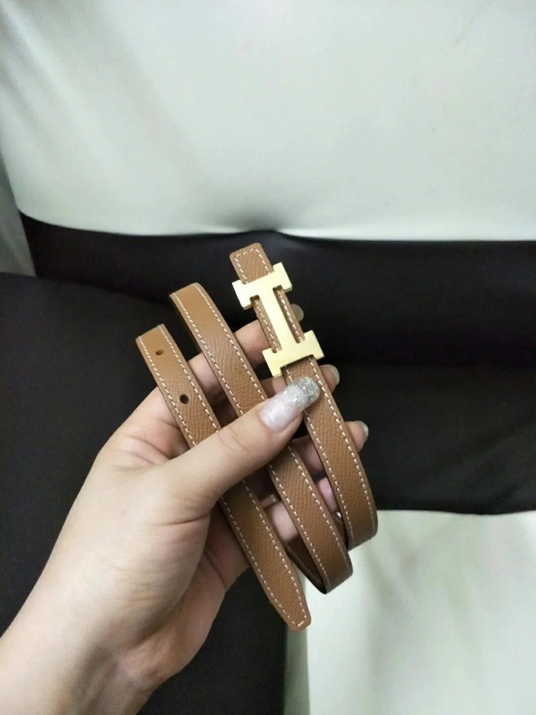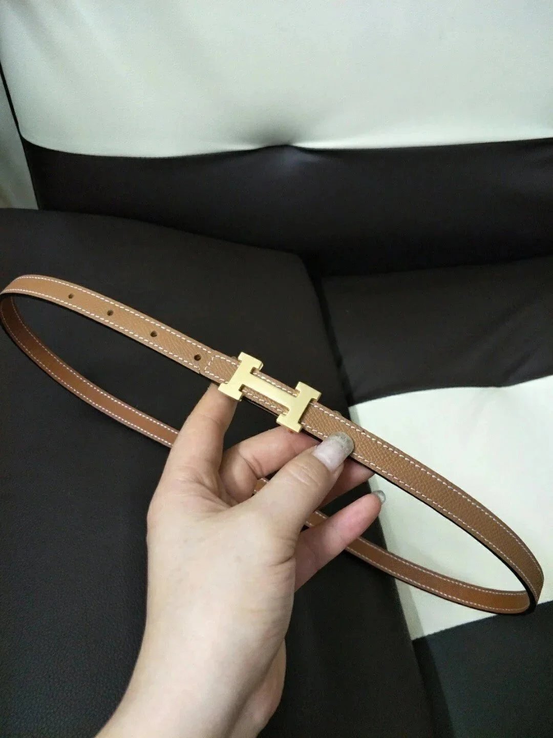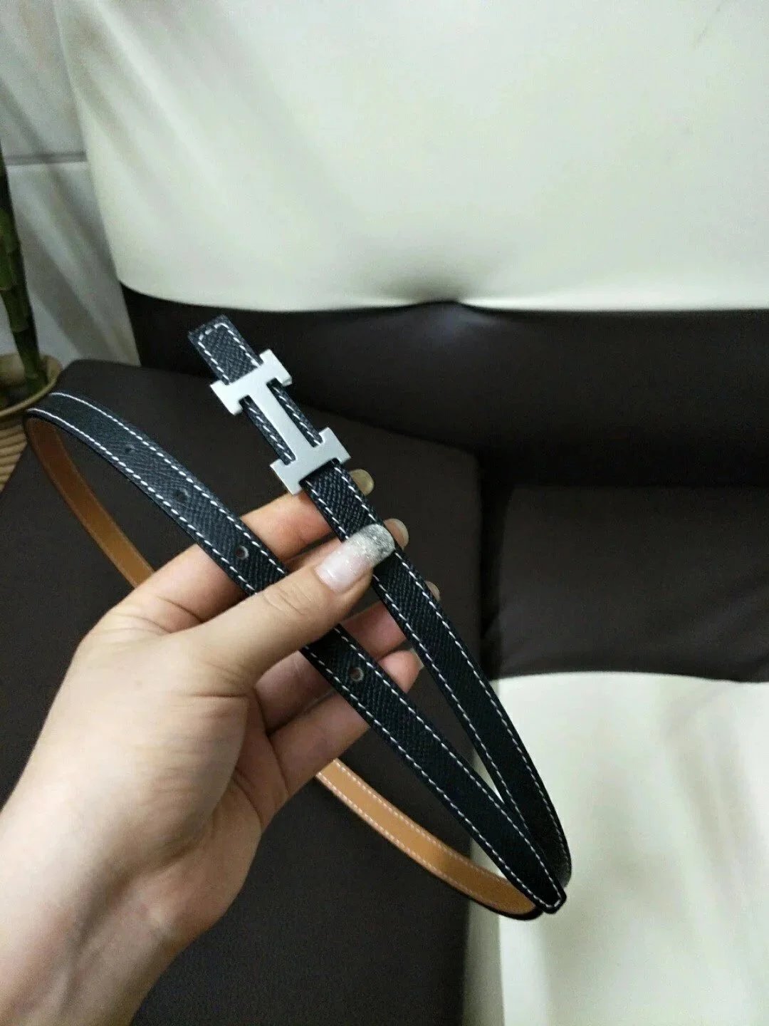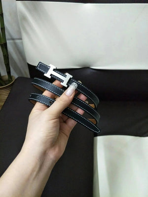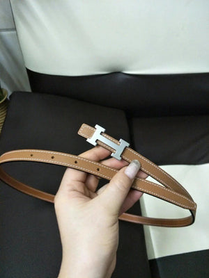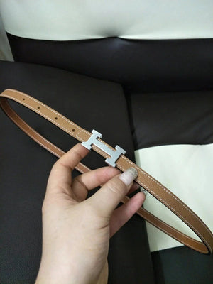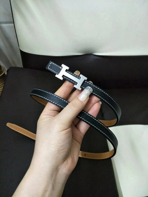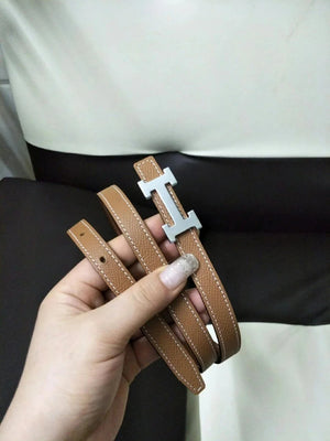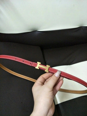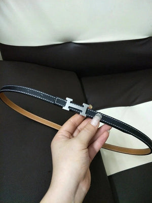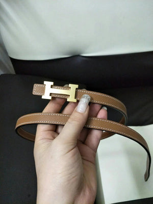Hermes Belt Top version High Quality Women's Belt First Layer Calfskin Double-Sided Letters h Buckle Casual All-Match Belt1.5cm