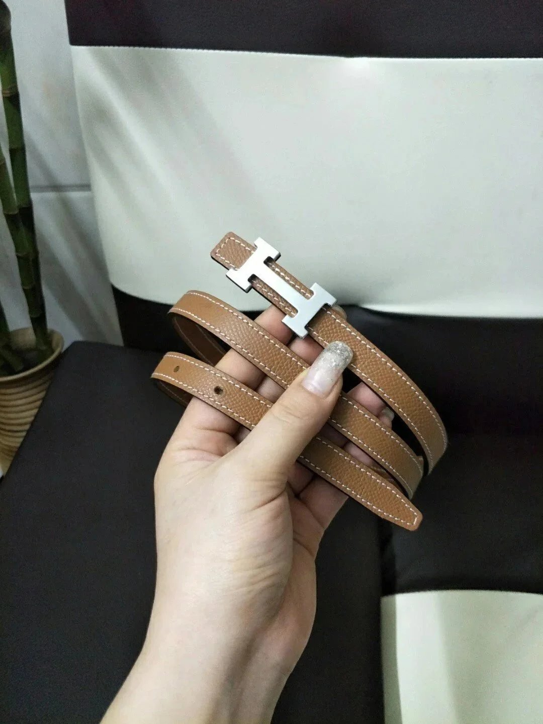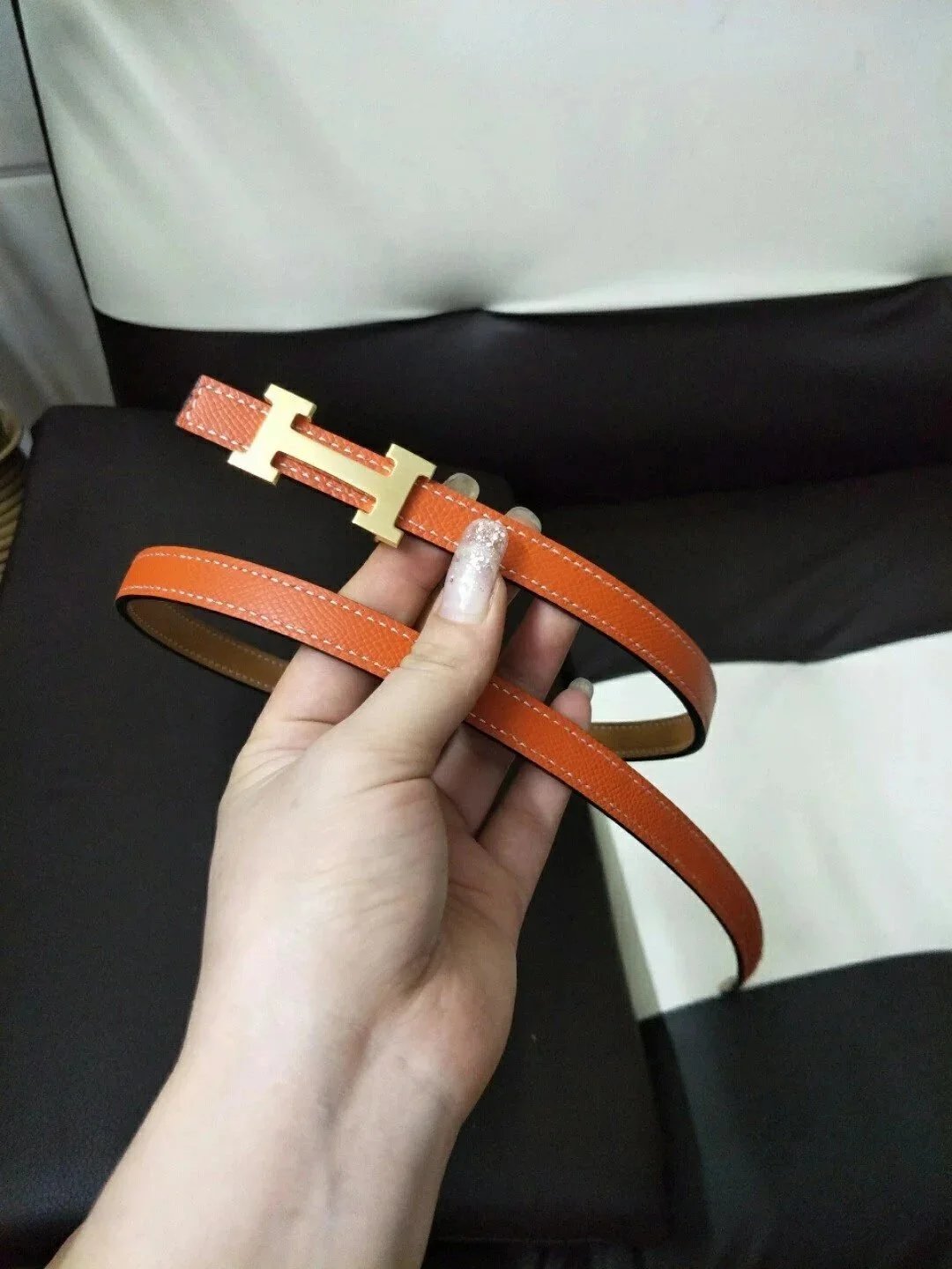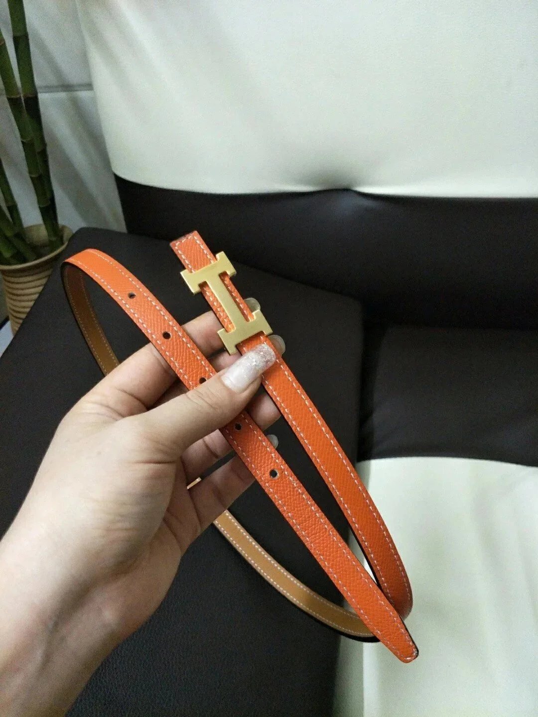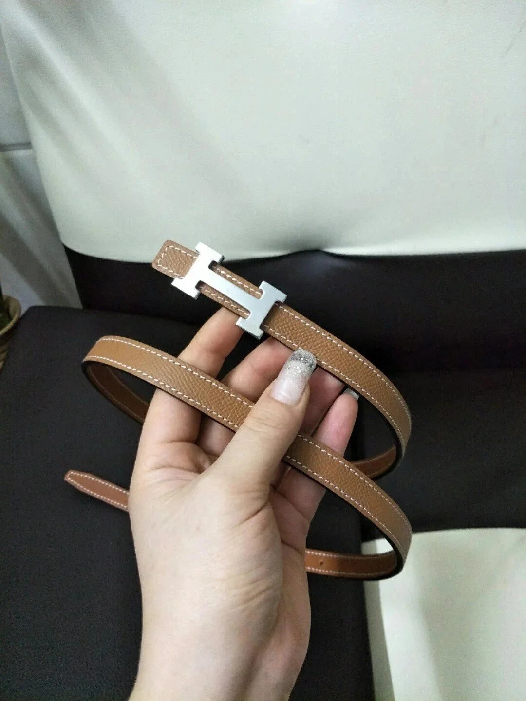 Hermes Belt Top version High Quality Women's Belt First Layer Calfskin Double-Sided Letters h Buckle Casual All-Match Belt1.5cm