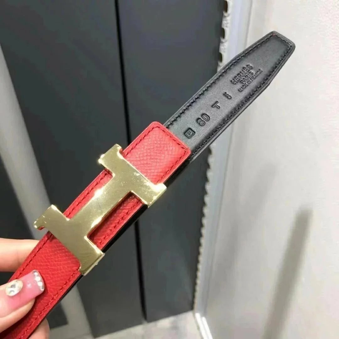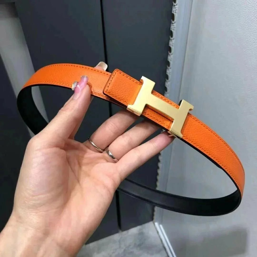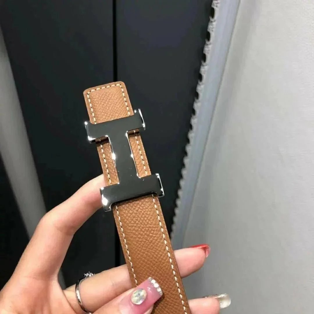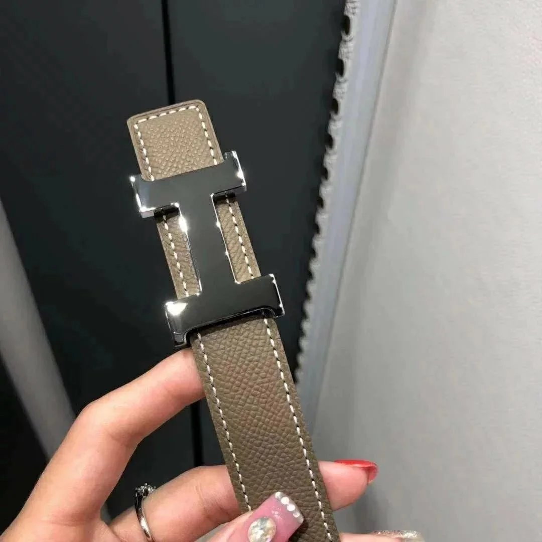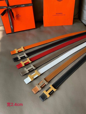 Hermes Belt Top version High Quality Women's Belt First Layer Calfskin Double-Sided Letters h Buckle Casual All-Match Belt2.4cm