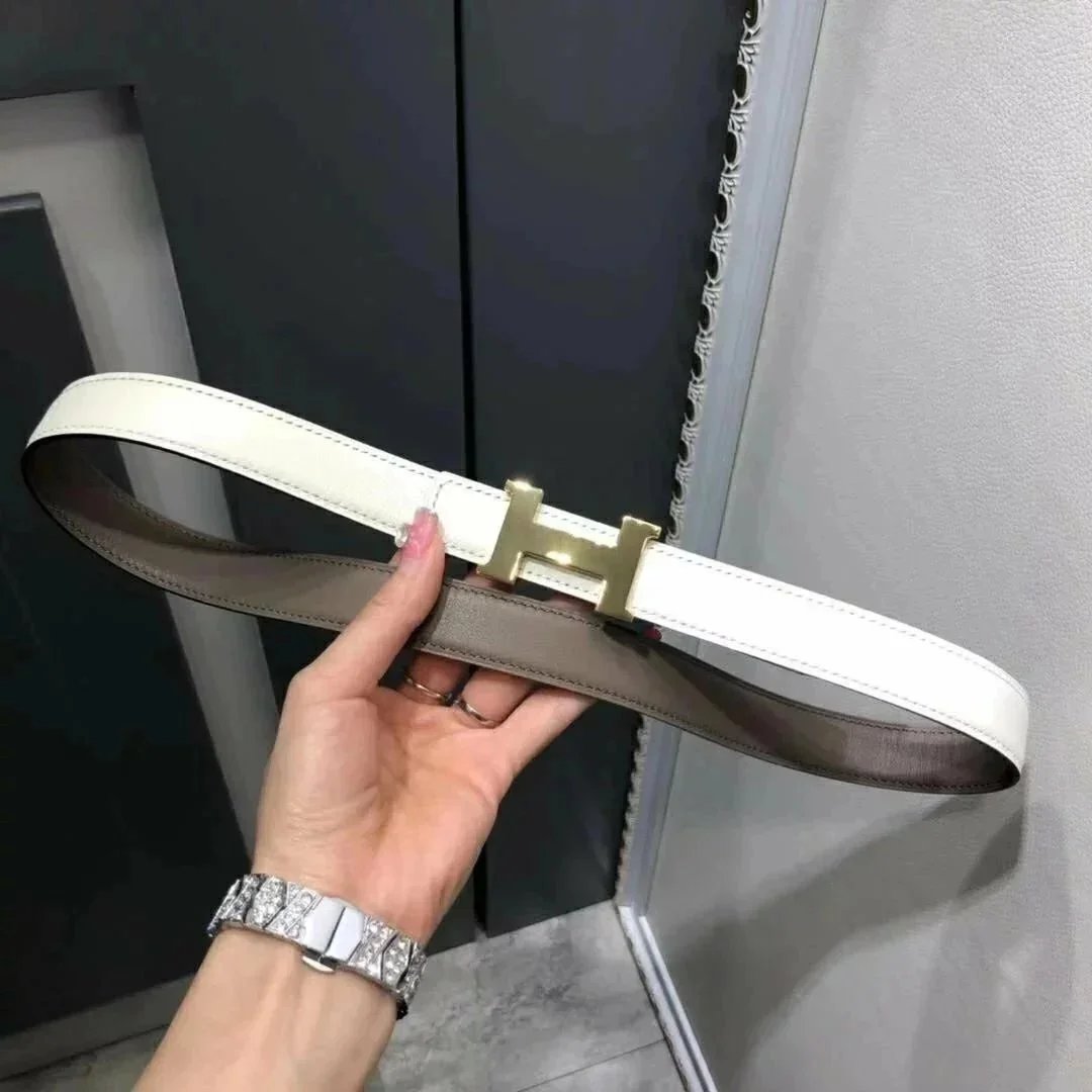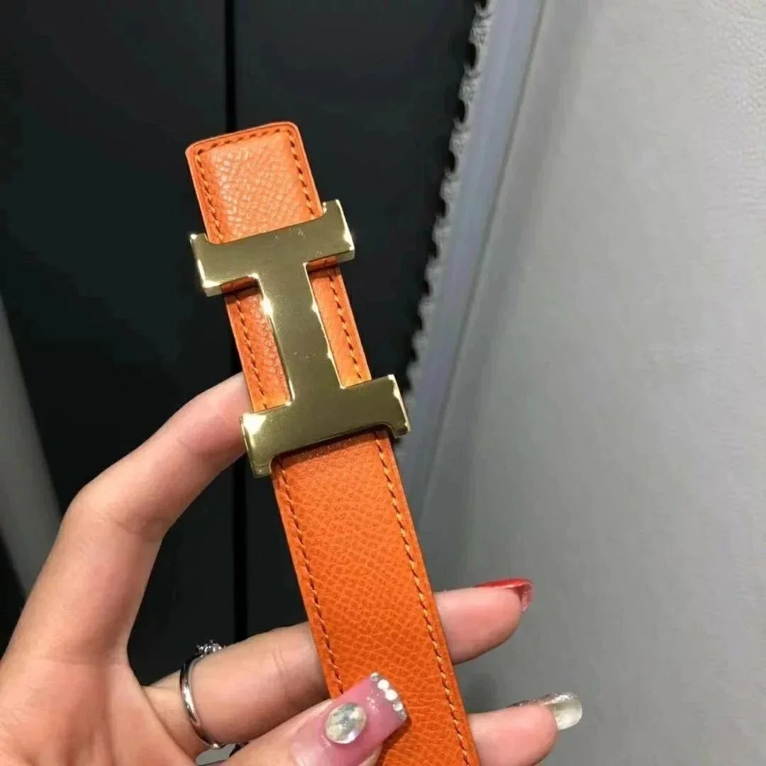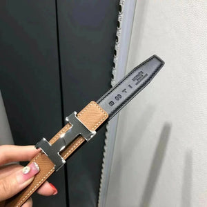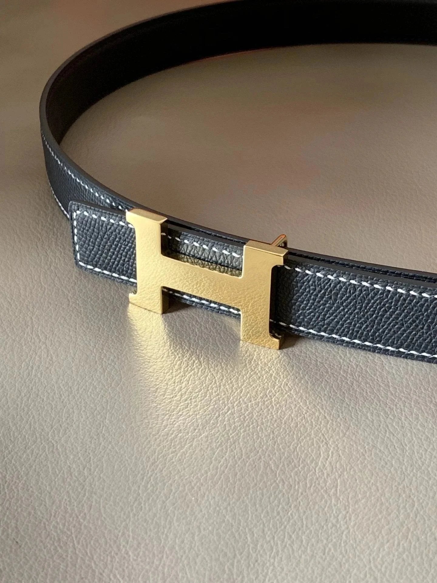 Hermes Belt Top version High Quality Women's Belt First Layer Calfskin Double-Sided Letters h Buckle Casual All-Match Belt2.4cm