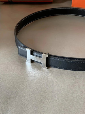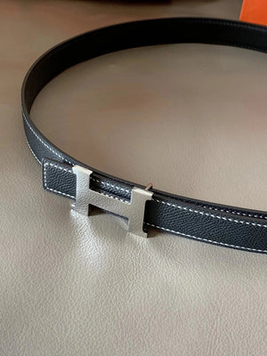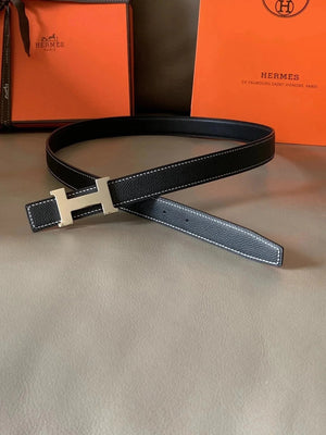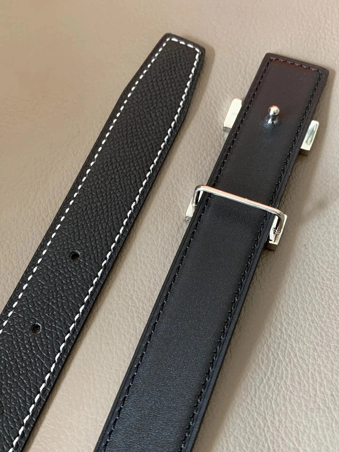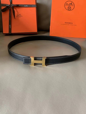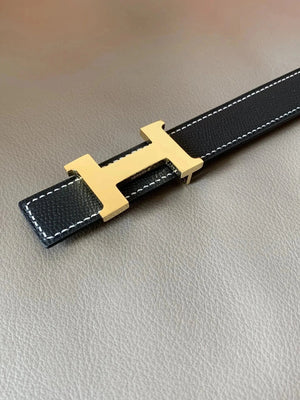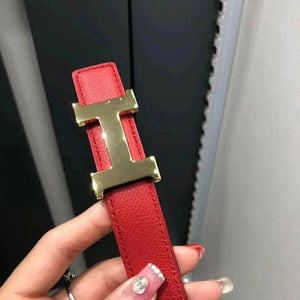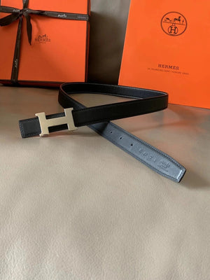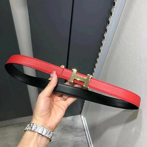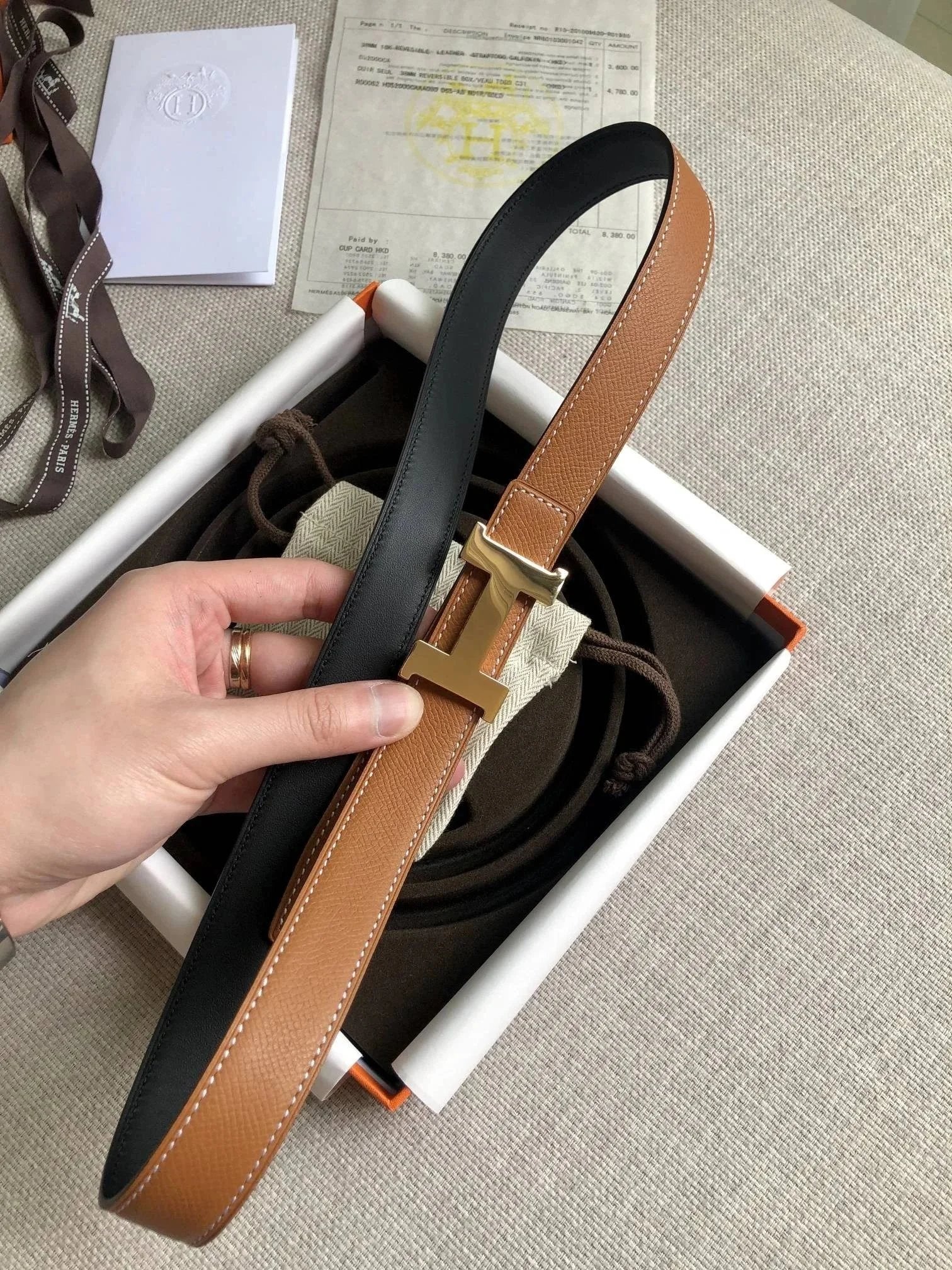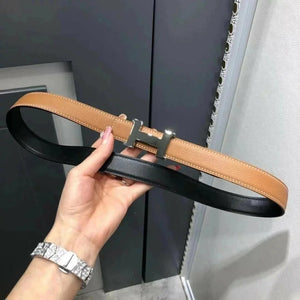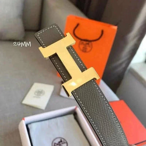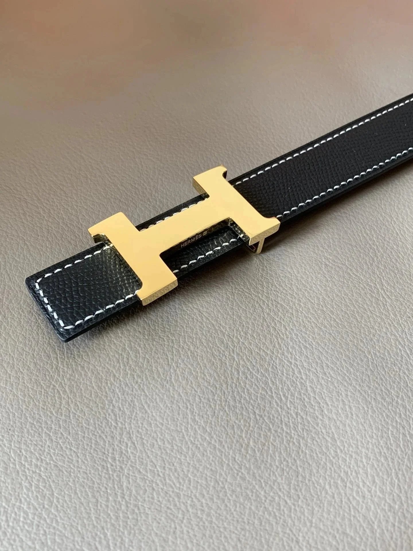 Hermes Belt Top version High Quality Women's Belt First Layer Calfskin Double-Sided Letters h Buckle Casual All-Match Belt2.4cm