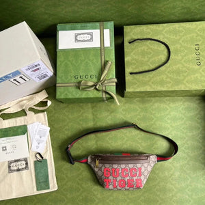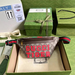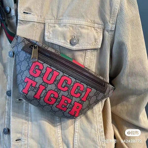 Gucci Women's Bag Top version 【High Version】Men's Chest Bag2022Early Spring New Year Limited Tiger tiger Graffiti Letter Waist Bag Chest Bag Men's and Women's Bags675181