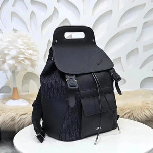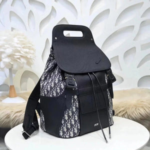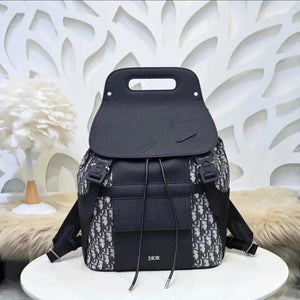 Dior Backpack Top version Homme Backpack Jacquard Presbyopic Schoolbag Saddle Bag Pairs Backpack Black Grain Side Touch Calfskin Backpack Men's and Women's Bags