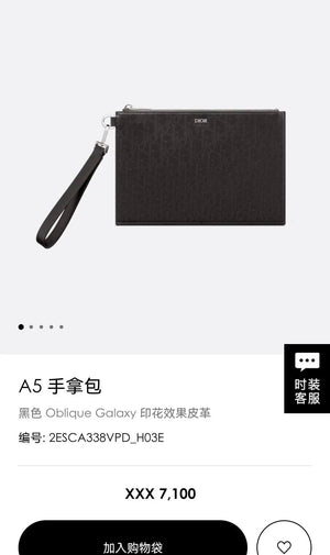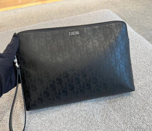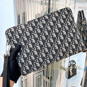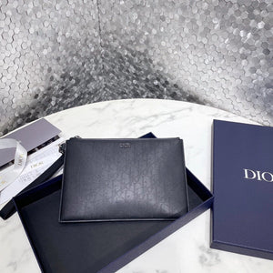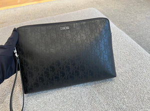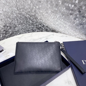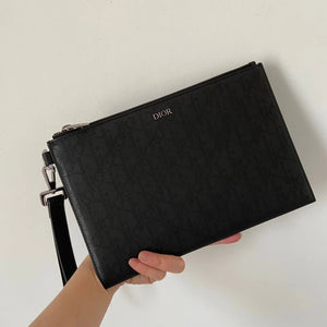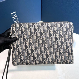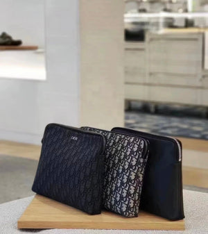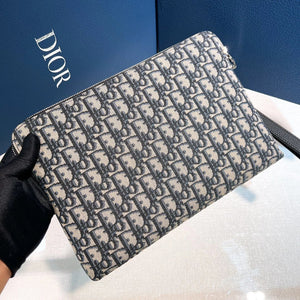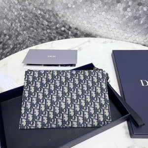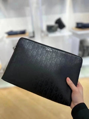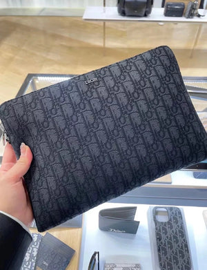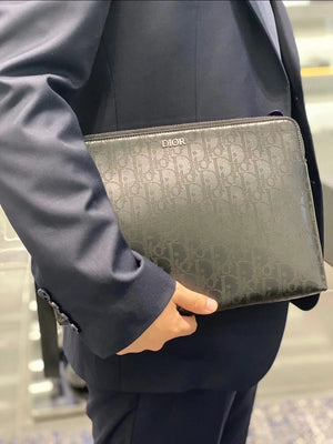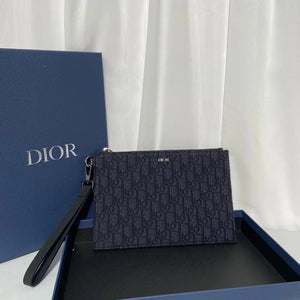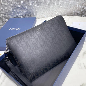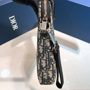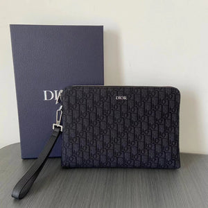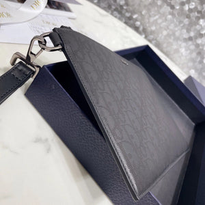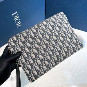 Dior Men's Bag Top version 【Imported Fabric】Surrogate Shopping Level Latest oblique Presbyopic Blue and Black Diamond Black and Gray Dijia A5Men's Clutch Hollow Leather Craft Men's Bag Large Capacity Handbag Dio Embroidered Grain Gray
