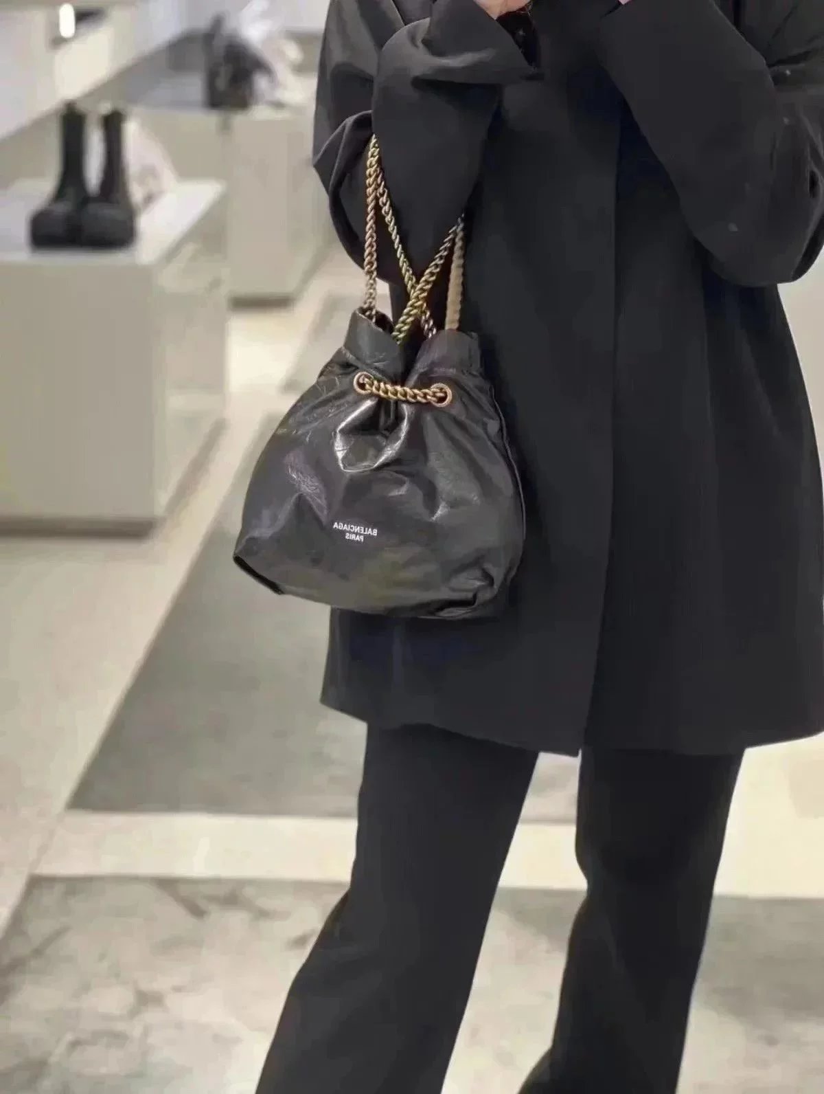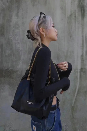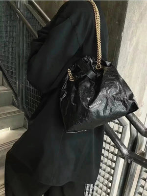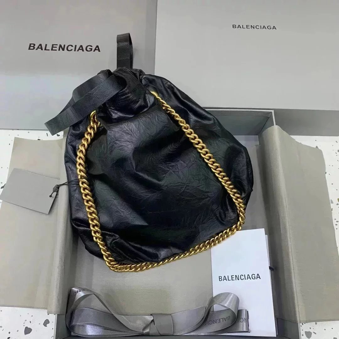 Balenciaga Bag Top version 【】In Stock Surrogate Shopping Grade New Crush Series Brand New Size Trash Garbage Bag Shopping Bag Drawstring Closed Garbage Pack Hobo Bag Casual Bag Backpack Messenger Bag Chain Bag Women's Bag Small Size25cm Large Size35cm