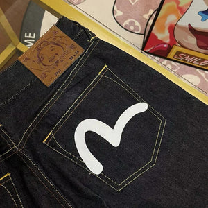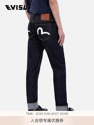 Evisu Jeans Top Version Jeans for Men2024New Small M Double Seagull Floral Print Casual Jumpsuit Slim-Fitting Straight Pants