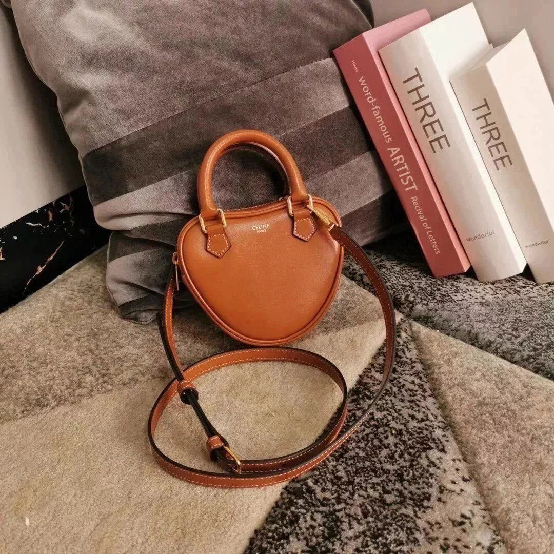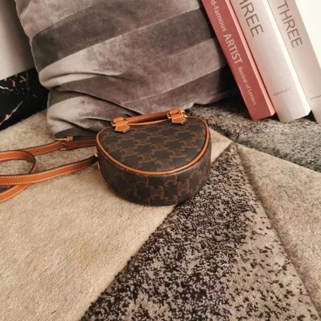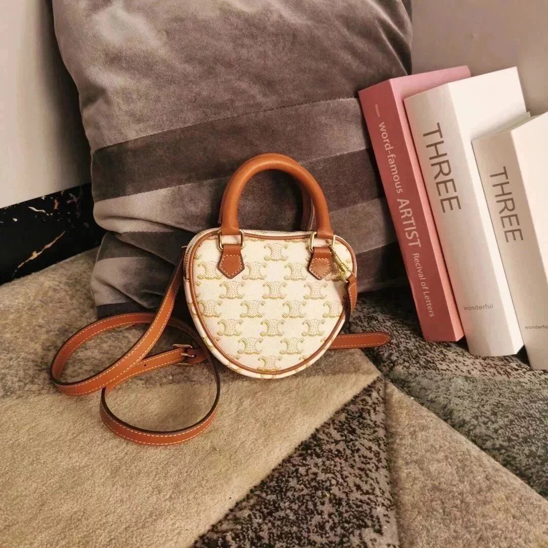 Celine women's bag Top version 【Kowloon Leather Edition】New Heart Bag New Year Capsule Series Heart-Shaped Handbag TRIOMPHE Logo Printing and Fun Type Heart Bag Can Be Carried by Hand、Women's Shoulder Crossbody Bag198223