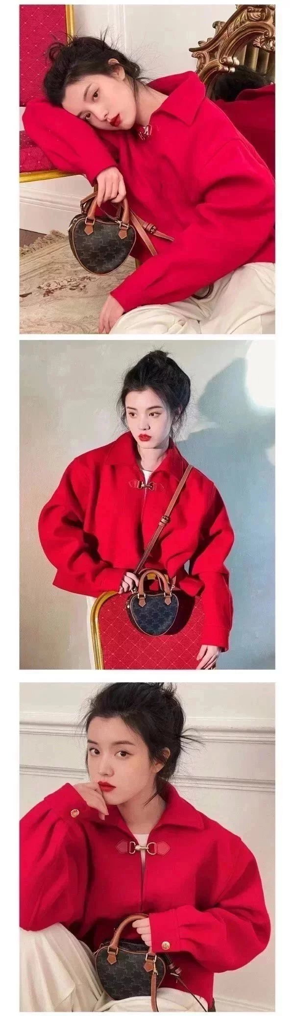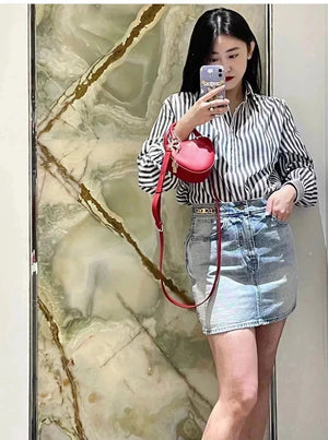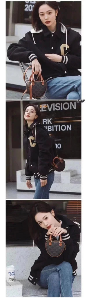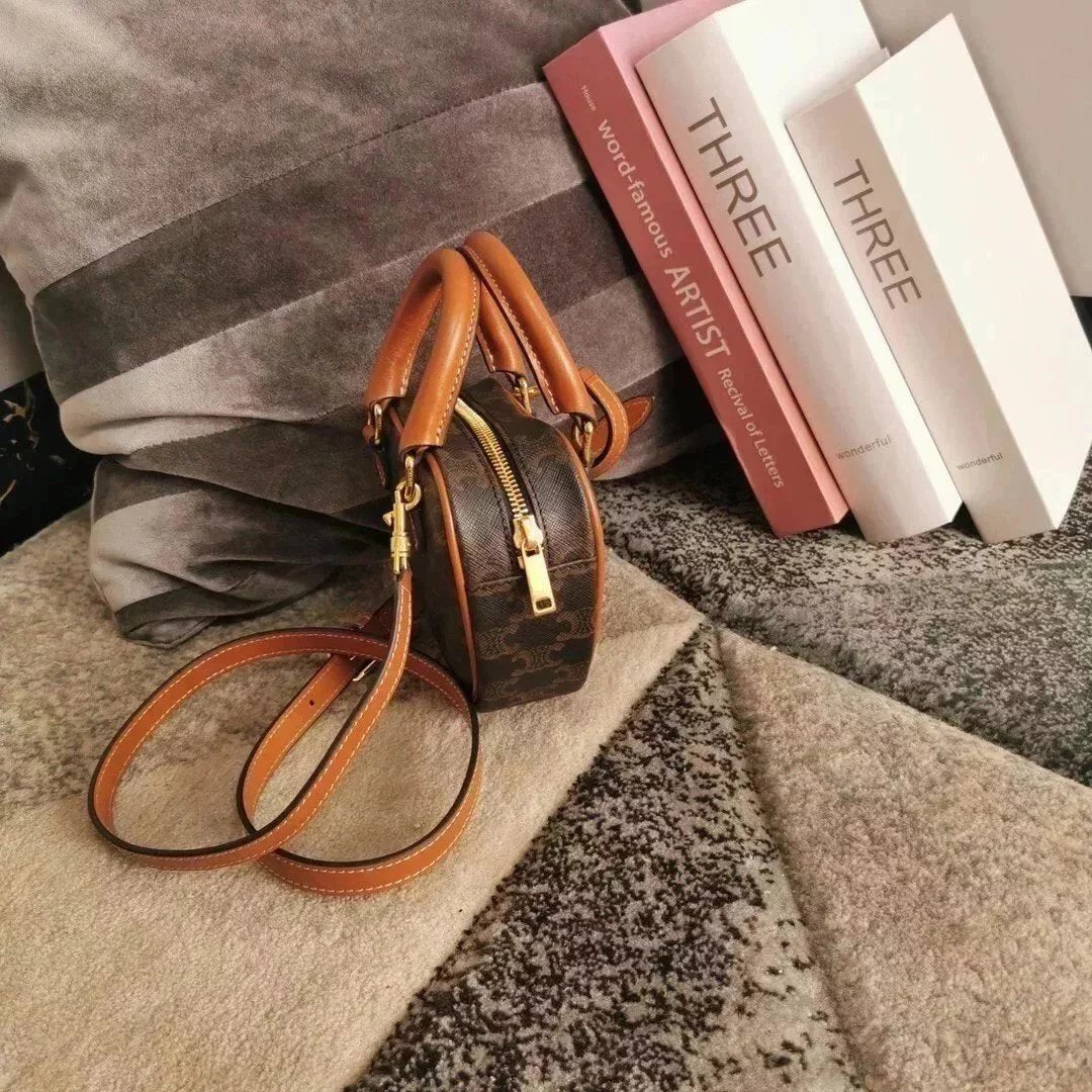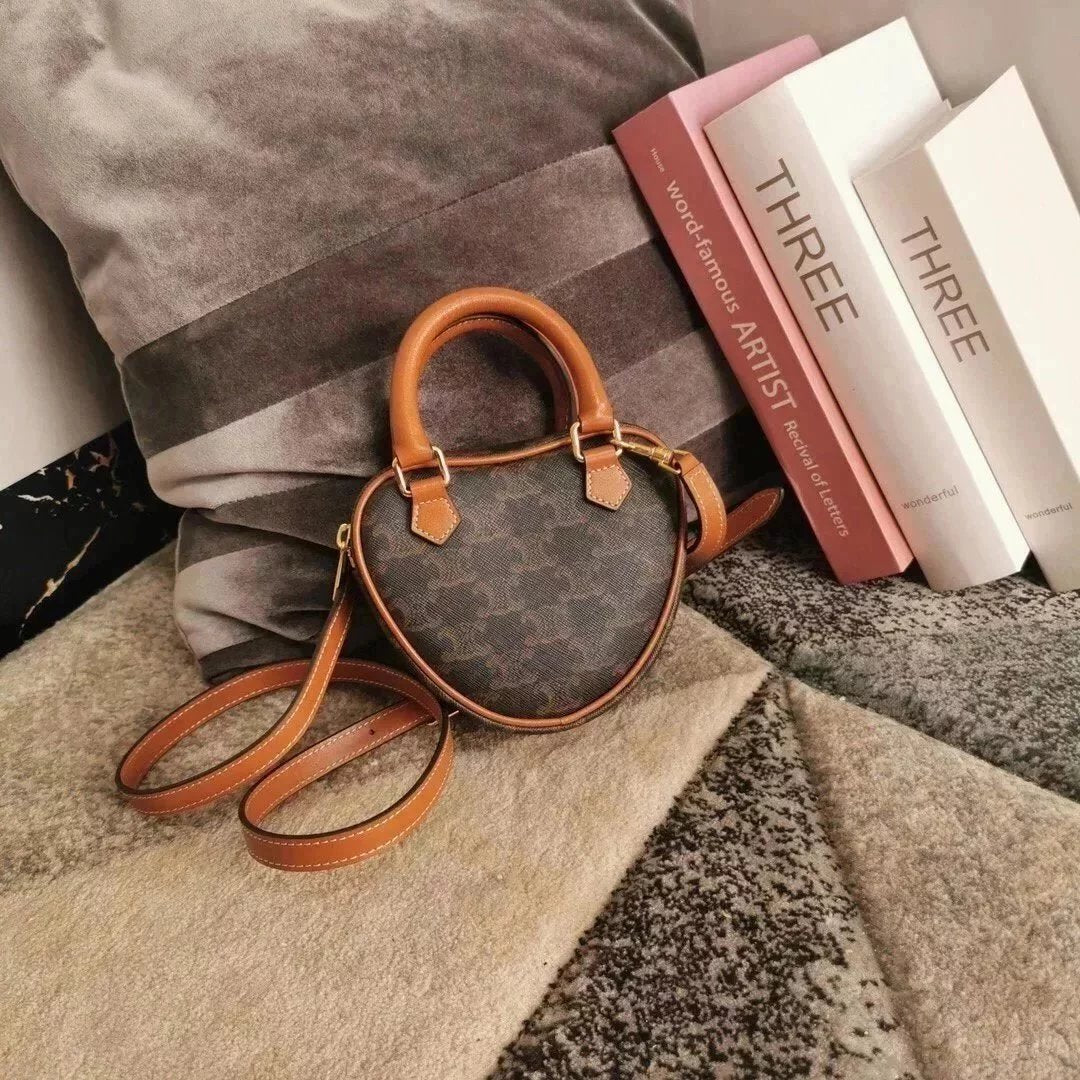 Celine women's bag Top version 【Kowloon Leather Edition】New Heart Bag New Year Capsule Series Heart-Shaped Handbag TRIOMPHE Logo Printing and Fun Type Heart Bag Can Be Carried by Hand、Women's Shoulder Crossbody Bag198223