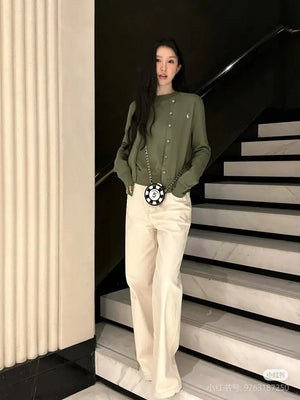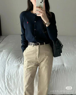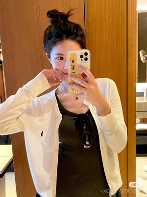 **Version Horse Logo Cardigan Sweater Women's Polo Cotton Plain Long-Sleeved Sweater Coat before Purchase Instructions