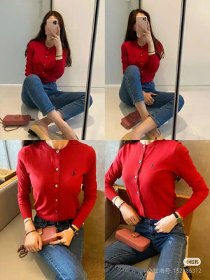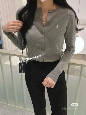 Ralph Lauren Sweater Top Version Label Plain Weaving Knitting Cardigan Sweater for Women polo Cotton Long-Sleeved Coat