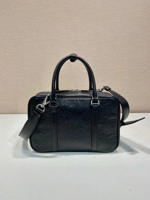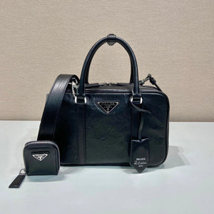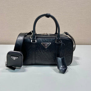 PRADA Bag Top version Latest 2-in-1 Model Style Mid-Ancient Boston Imported Pleated Soft Sheepskin Handbag Chain Bag Crossbody Bag Shoulder Bag Underarm Bag Handbag Women's Bag1BB098Small Size1BB092Large Size