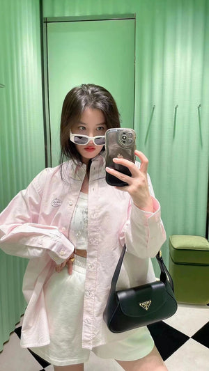 PRADA Bag Top version Latest Enamel Metal Triangle Logo Badge Calfskin Underarm Bag Crossbody Bag Calfskin Messenger Bag Shoulder Bag Underarm Bag Handbag Women Bag1BD358