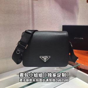PRADA Bag Top version Latest Men Messenger Bag Imported Original Single Cross Pattern Cowhide Retro Fashion Casual Saddle Bag Nylon Shoulder Strap Flap Bag Flap Bag Backpack Shoulder Bag Messenger Bag Men's Bag Men's Bag2VD038