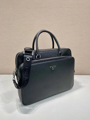This Elegant and Exquisite Briefcase Is Equipped with a Detachable Nylon Shoulder Girdle with a Large Front Pocket to Create a Functional Structure. There Are Many Grid Layers, and the Bag Body Is Made of the Brand Safiano Leather. It Is Simple and Elegant, and It Is Also a Permanent Popular Product??