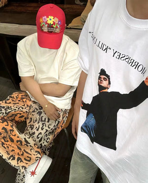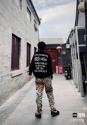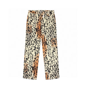 **Version Stussy Stussy Leopard Patterned Pants Jeans Straight Retro Trousers Men's and Women's Casual Pants