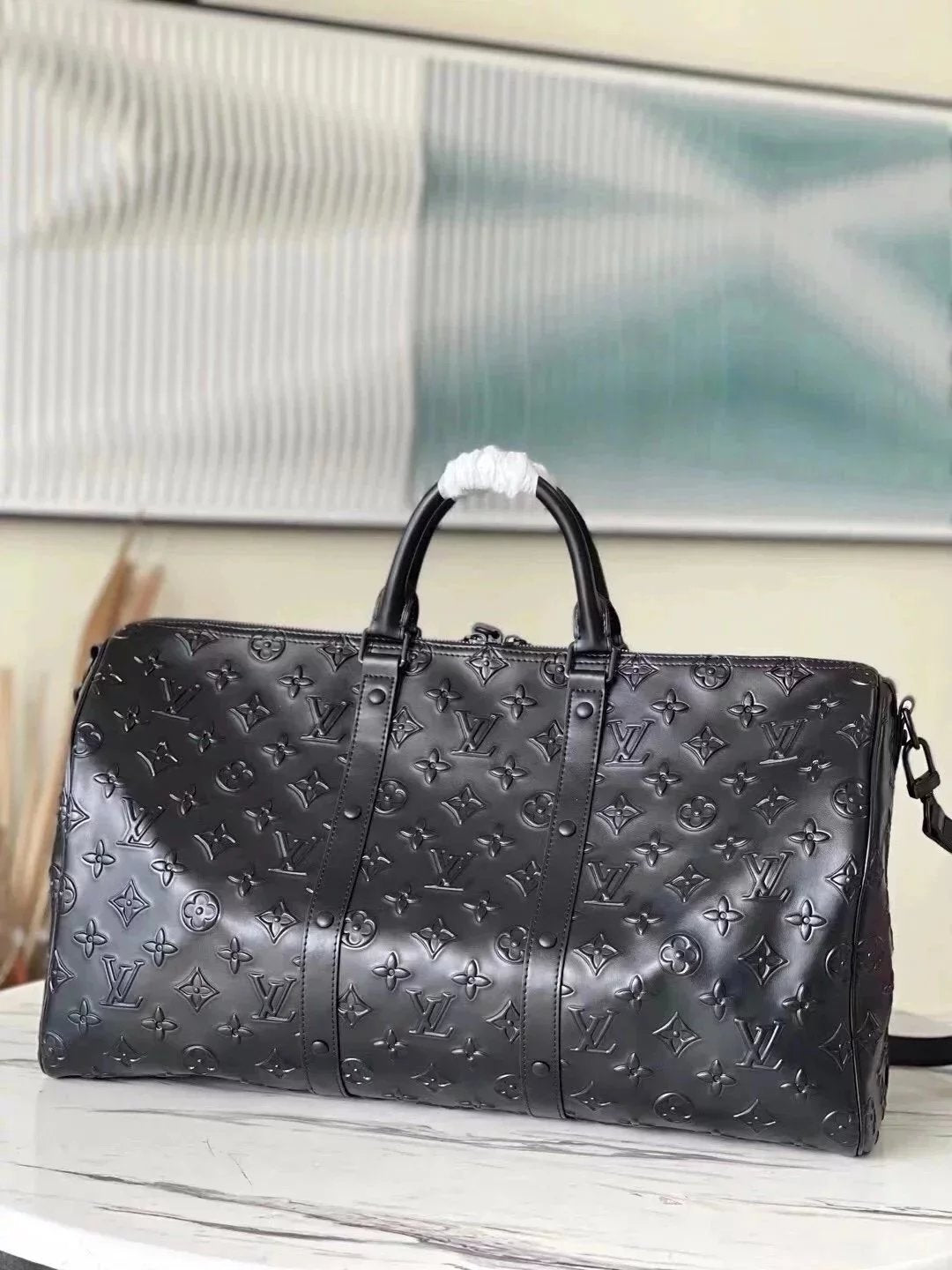 **The Original M57963 Keepall Bandouli Re Travel Bag Is Embossed with Classic Monogram Elements on the Surface of Delicate Cowhide, Presenting the Monogram Seal Pattern, and Its Unique Texture Is Similar to the Old Letter Sealing Wax. Plenty of Space and Removable Shoulder Straps Are Convenient for Short Holiday Trips. Size: 50X29X23cm Instructions before Purchase
