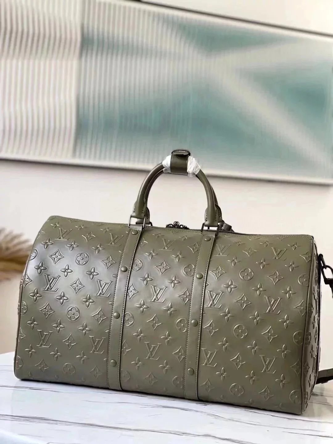 Louis Vuitton LV Travel Bag Top version 【Level Surrogate Shopping】KEEPALLBANDOULIèRE50Men's Travel Bag Travel Bag Luggage Bag Luggage Bag Shoulder Messenger Handbag M57963Green