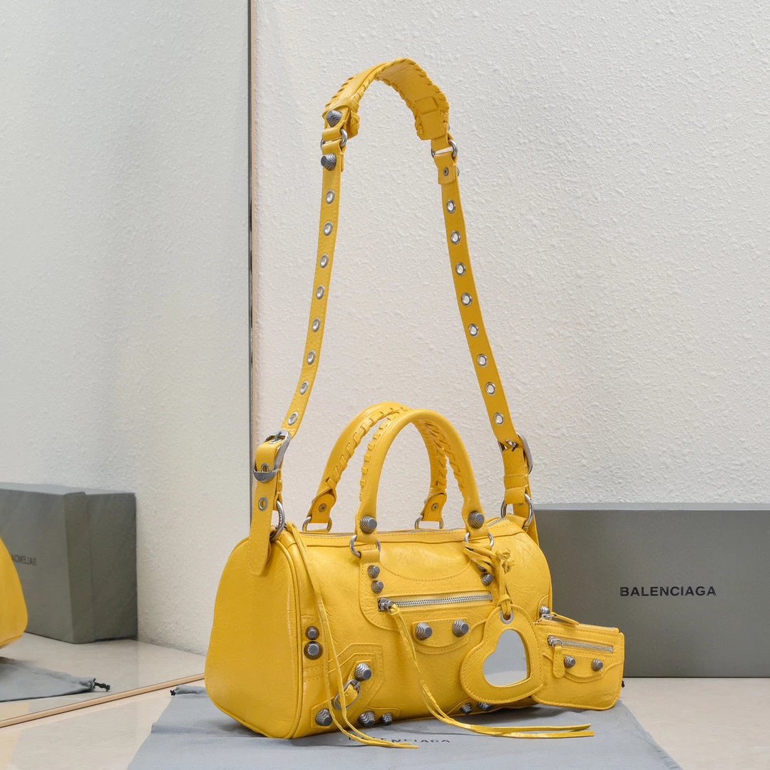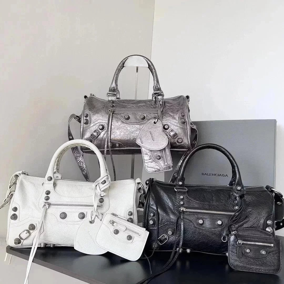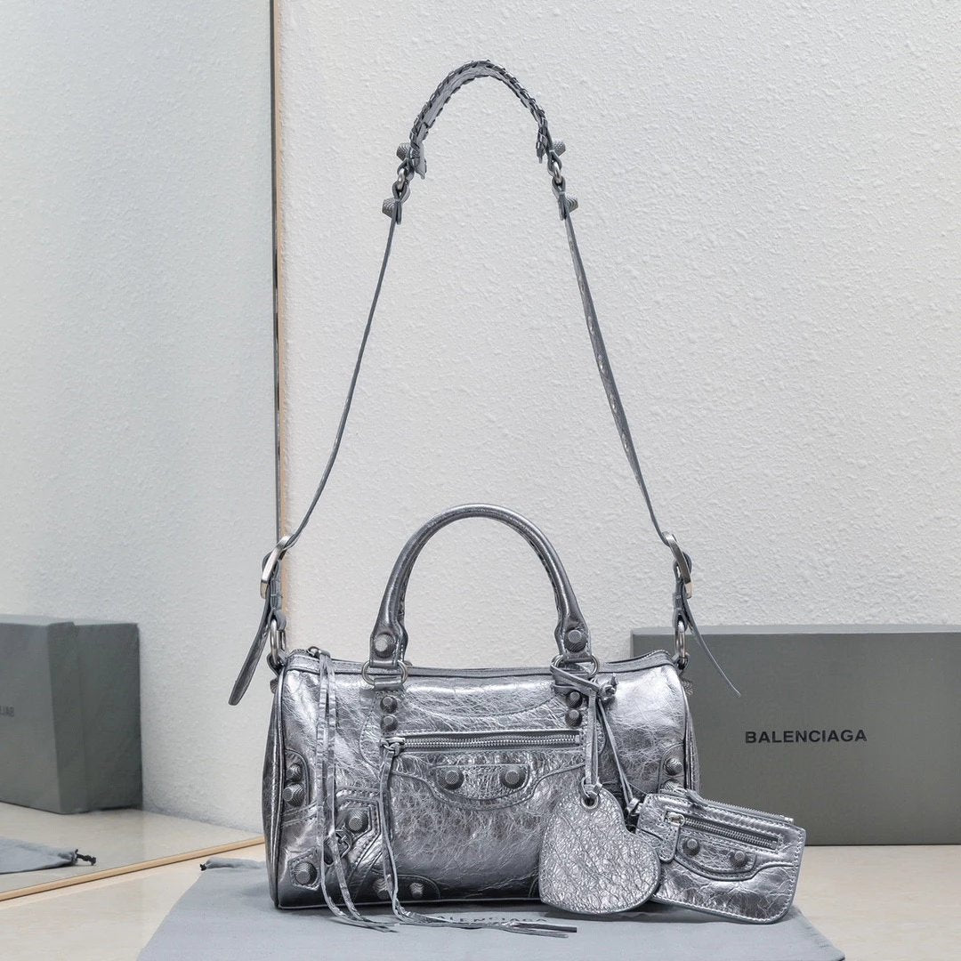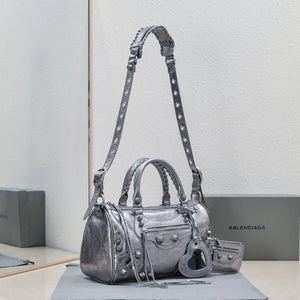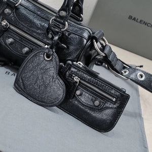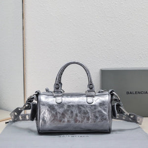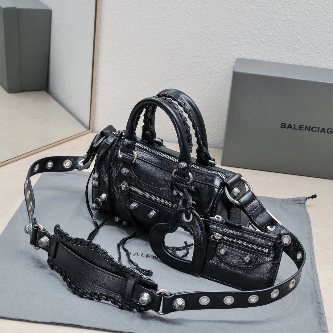 Balenciaga * Le Cagole Series Duffle Bag Cylinder Travel Bag?? Black Fine Grain Sheepskin Mini Travel Bag, Distressed Silver Metal Accessories, Retains the Classic Motorcycle Bag Outline, with Unique and Practical Heart-Shaped Small Mirror and Small Card Holder, Detachable Shoulder Strap Is More Convenient to Use! The New Shoulder Strap Buckle Become More Cool and Handsome??? Sweet and Cool Perfect Item Selection