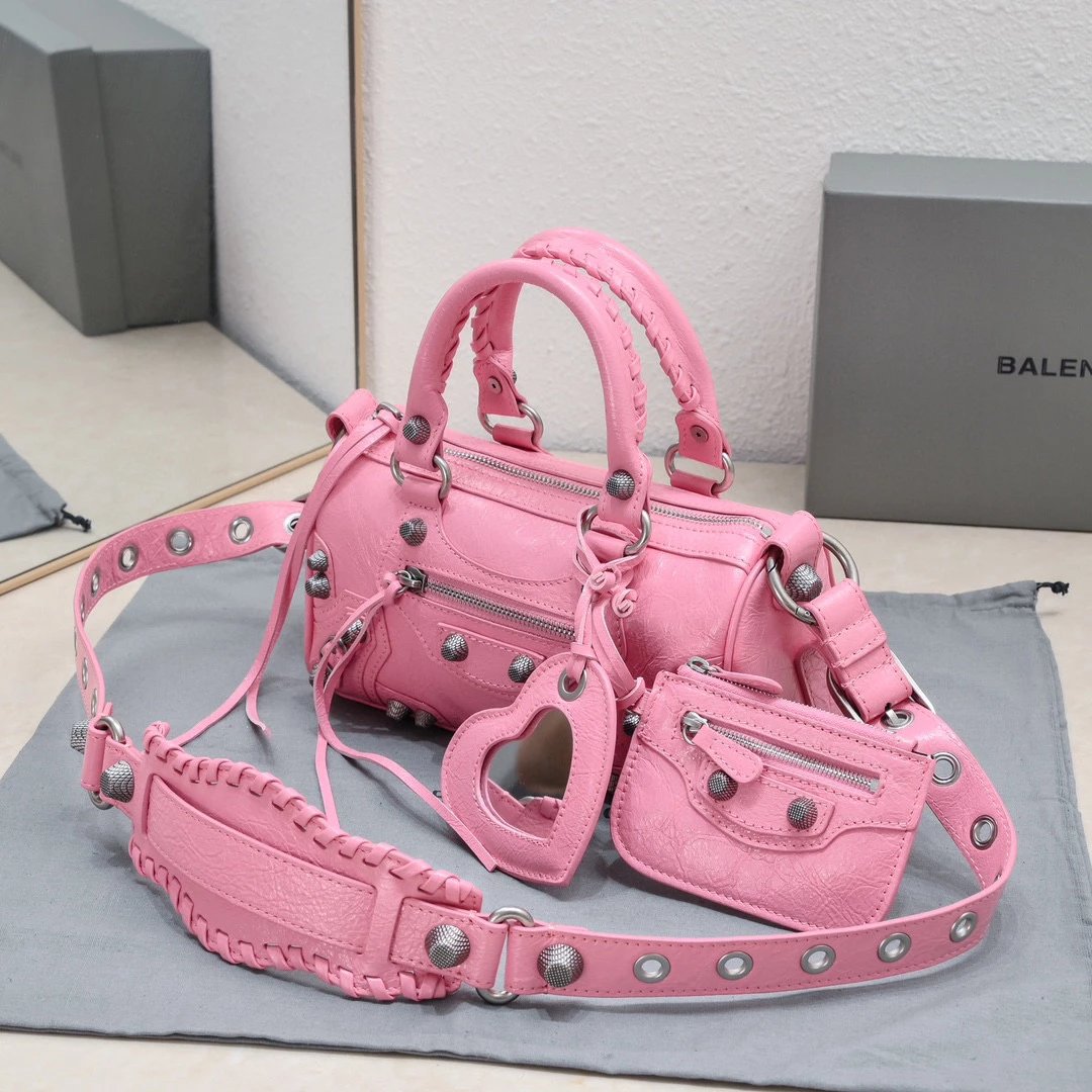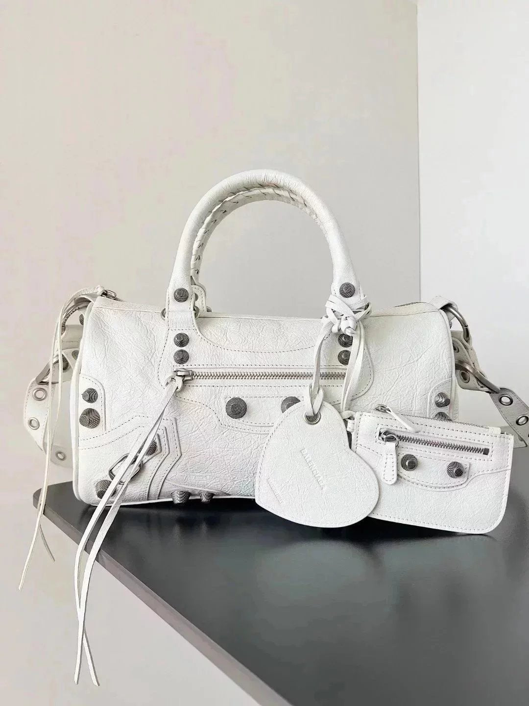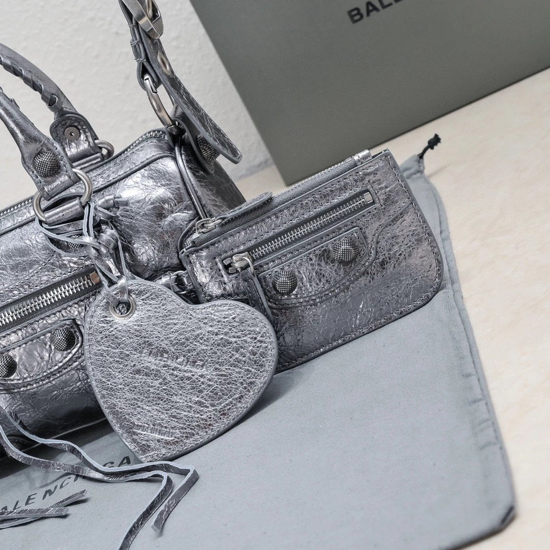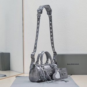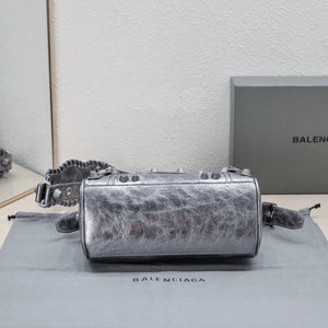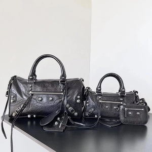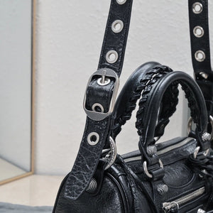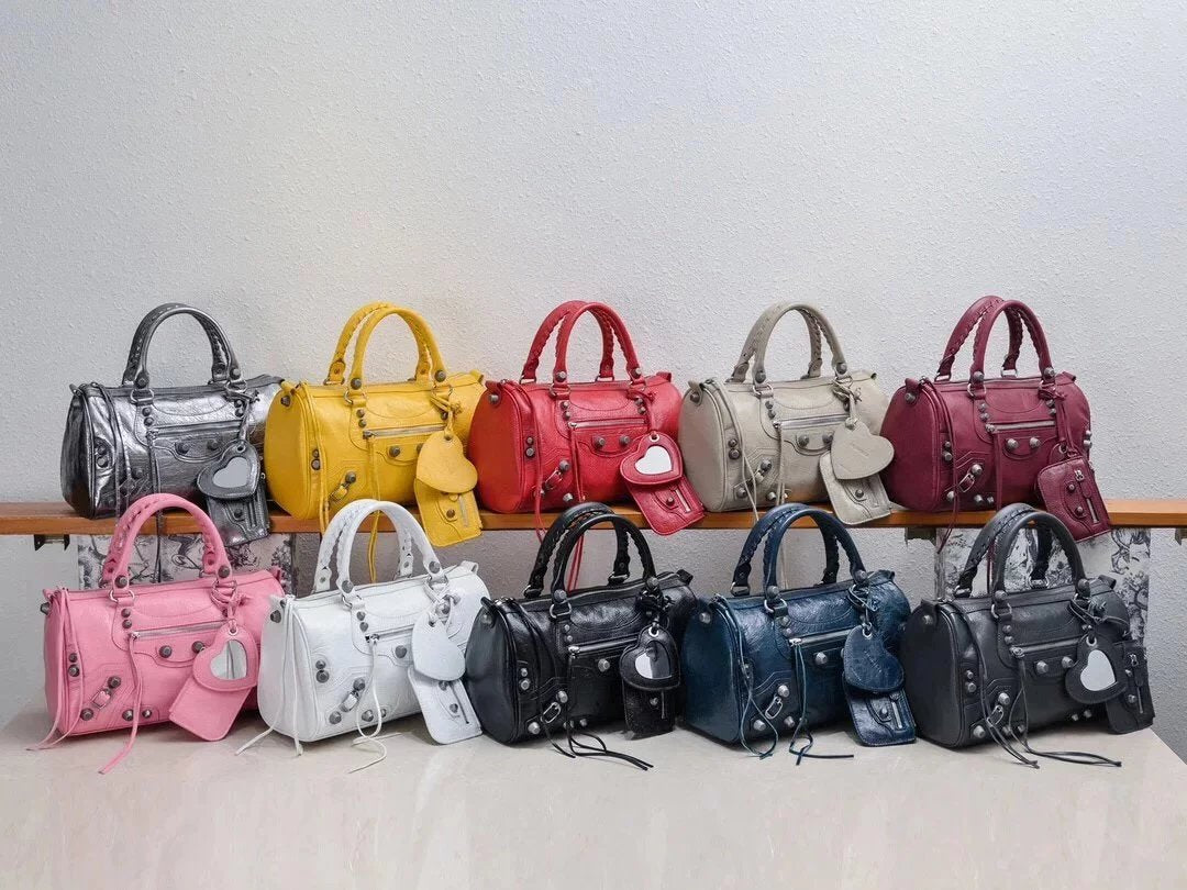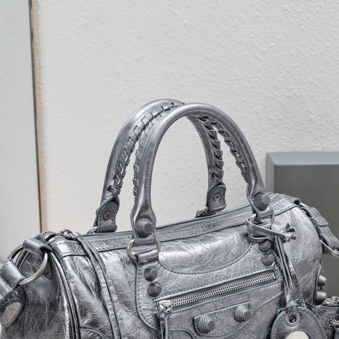 Balenciaga * Le Cagole Series Duffle Bag Cylinder Travel Bag?? Black Fine Grain Sheepskin Mini Travel Bag, Distressed Silver Metal Accessories, Retains the Classic Motorcycle Bag Outline, with Unique and Practical Heart-Shaped Small Mirror and Small Card Holder, Detachable Shoulder Strap Is More Convenient to Use! The New Shoulder Strap Buckle Become More Cool and Handsome??? Sweet and Cool Perfect Item Selection