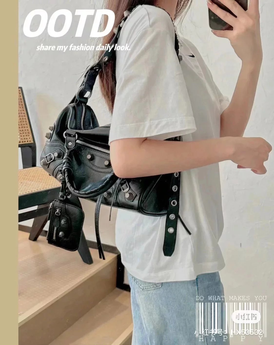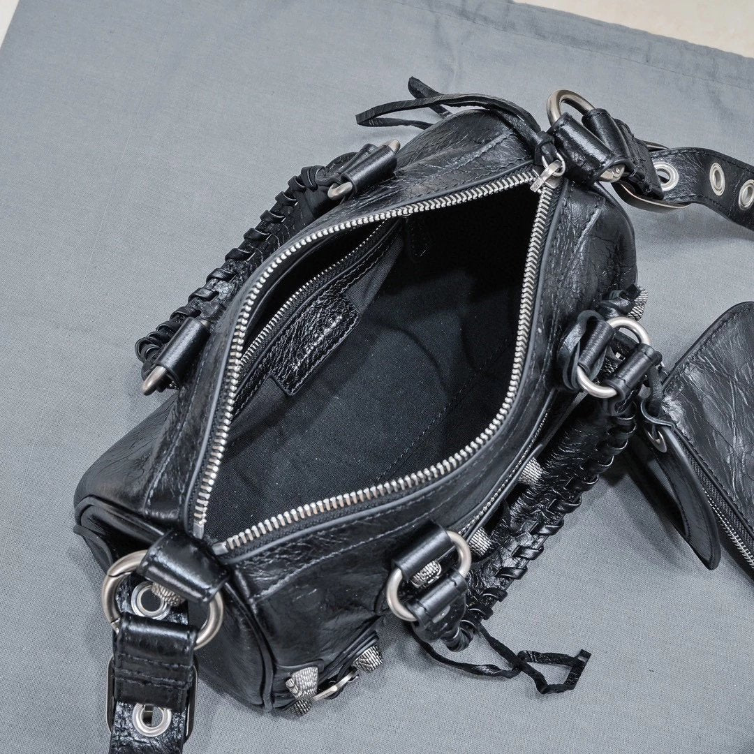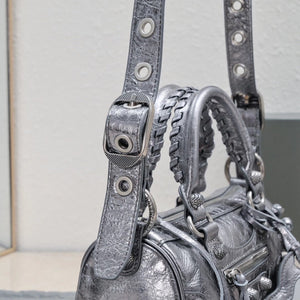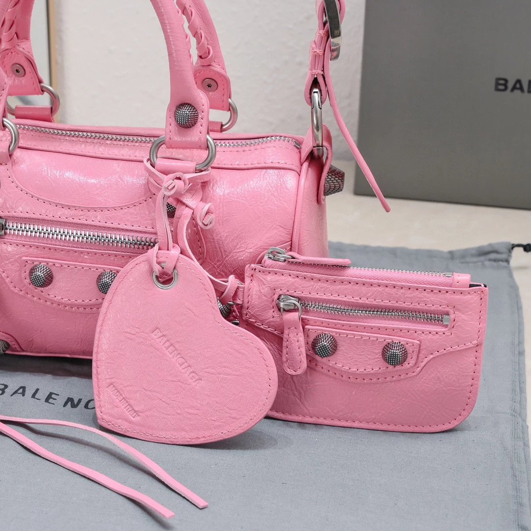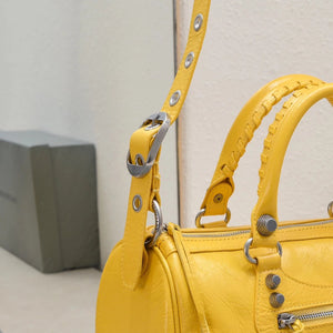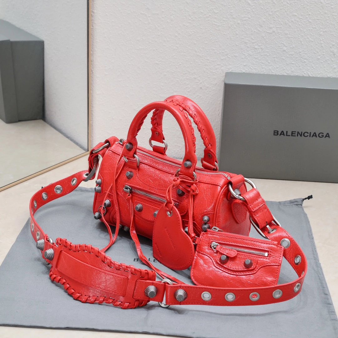 Balenciaga * Le Cagole Series Duffle Bag Cylinder Travel Bag?? Black Fine Grain Sheepskin Mini Travel Bag, Distressed Silver Metal Accessories, Retains the Classic Motorcycle Bag Outline, with Unique and Practical Heart-Shaped Small Mirror and Small Card Holder, Detachable Shoulder Strap Is More Convenient to Use! The New Shoulder Strap Buckle Become More Cool and Handsome??? Sweet and Cool Perfect Item Selection
