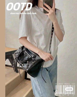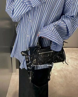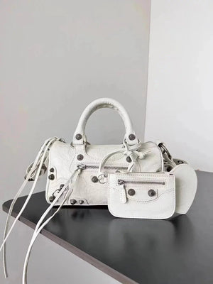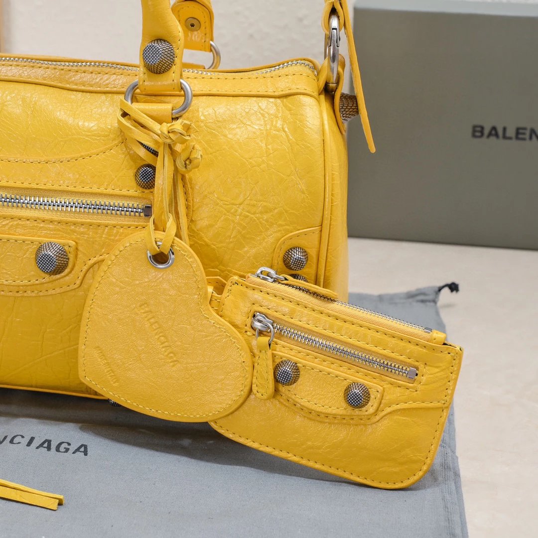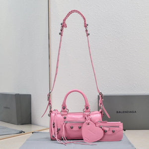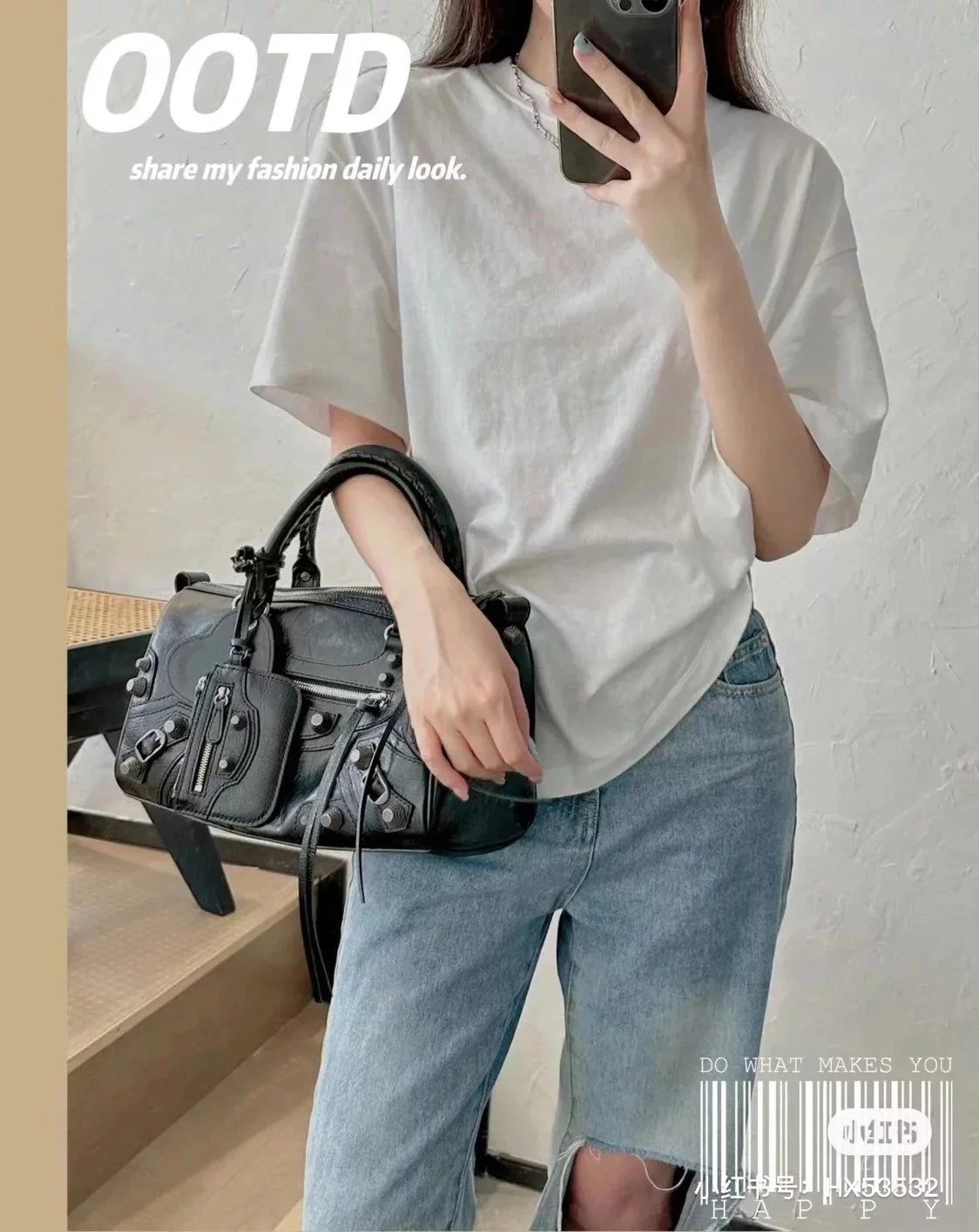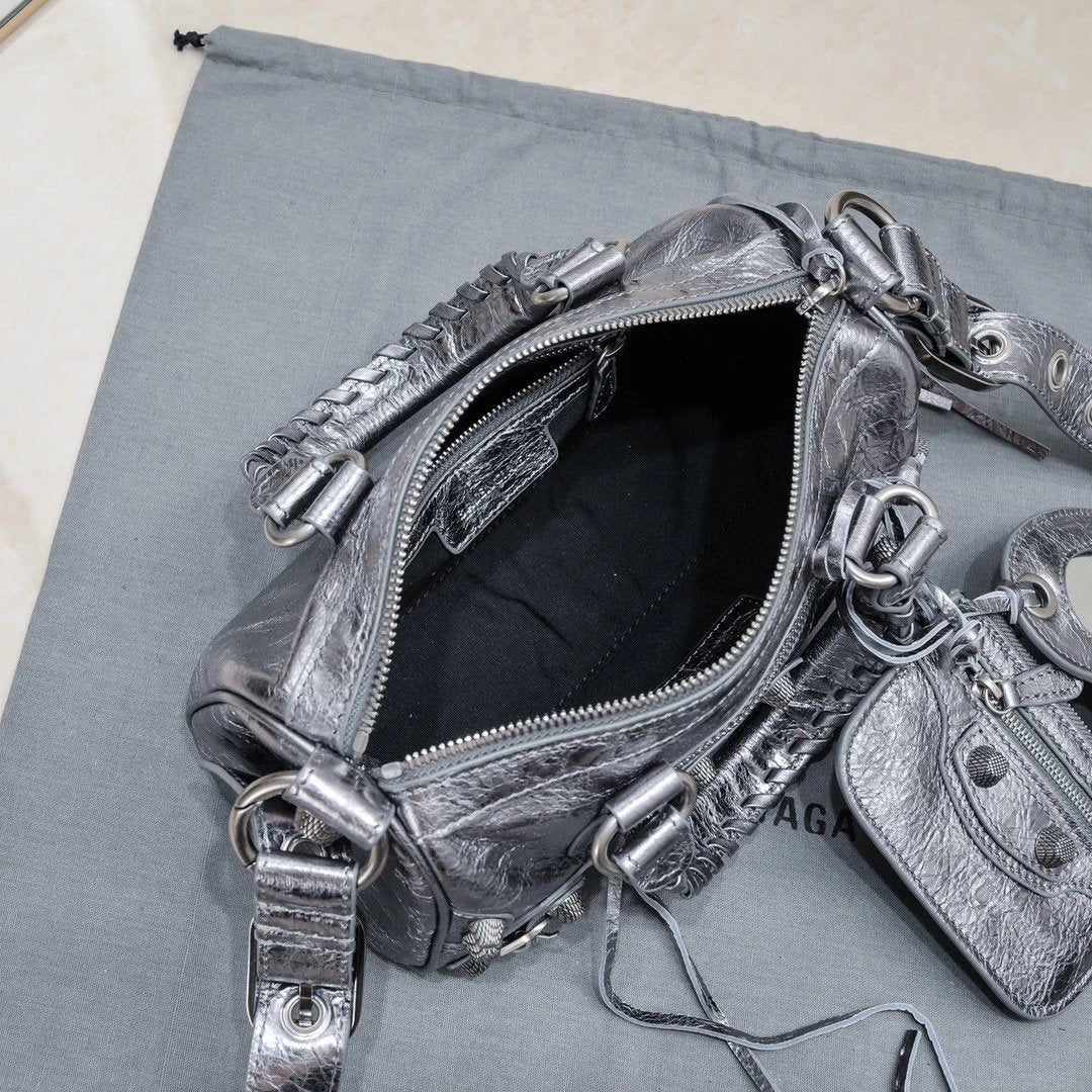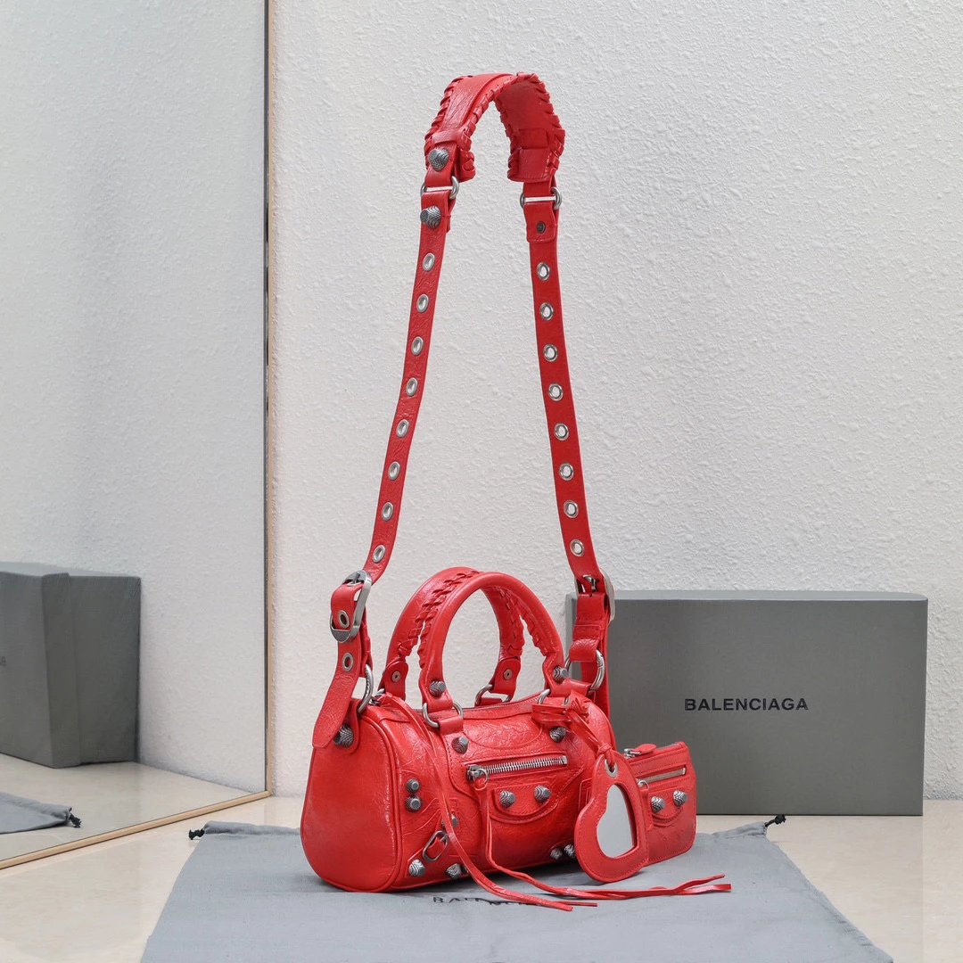 Balenciaga * Le Cagole Series Duffle Bag Cylinder Travel Bag?? Black Fine Grain Sheepskin Mini Travel Bag, Distressed Silver Metal Accessories, Retains the Classic Motorcycle Bag Outline, with Unique and Practical Heart-Shaped Small Mirror and Small Card Holder, Detachable Shoulder Strap Is More Convenient to Use! The New Shoulder Strap Buckle Become More Cool and Handsome??? Sweet and Cool Perfect Item Selection
