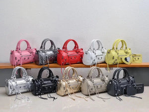 Balenciaga Bag Top version 【Level Surrogate Shopping】Original Leather23New Minidufflebag Round Barrel Travel Bag Lecagole Series Boston Motorcycle Bag dufflecagole Cylinder Motorcycle Bag Pillow Bag Lambskin Material Shoulder Bag Messenger Bag Portable Wo
