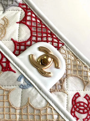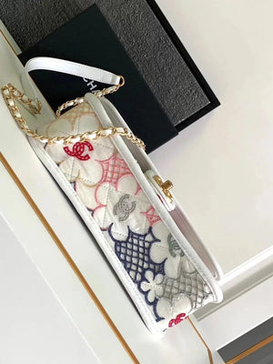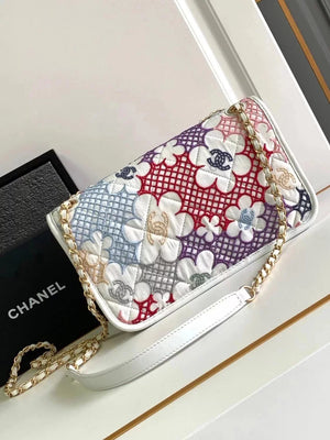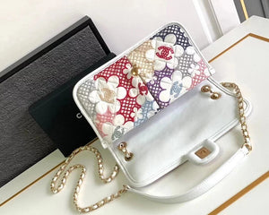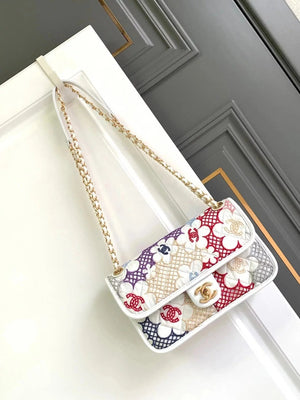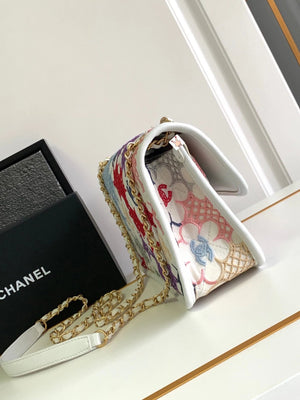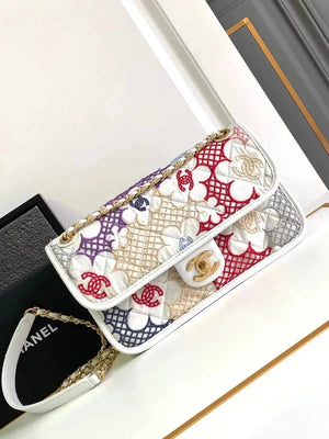 Chanel Women's Bag Top version Limited Grandma New CF Flap Bag Woven Lace Colored Mosaic Women Bag Orange Dreamy Sweet Candy Girl Summer Chain Bag Shoulder Bag Crossbody Bag Underarm Bag