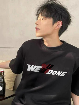**Version We11done Love Letter Printing Summer Short Sleeve Men's and Women's Loose Welldone Fashion Brand Half Sleeve T-shirt before Purchase Instructions