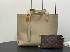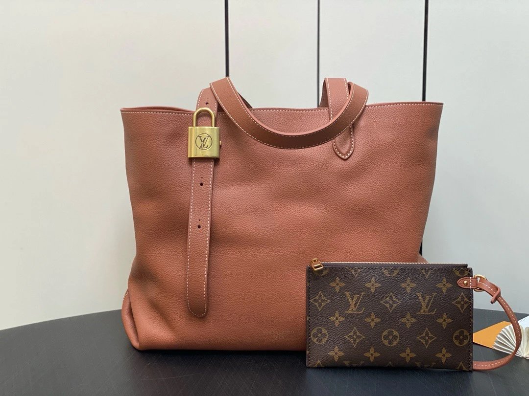 M25342 Brown Full Leather Shopping Bag Series Low Key Cabas Handbag M25341 Black M25342 Brown M25343 Building Malachite Green (inside and outside Leather) 2024 Latest Autumn and Winter New, Low Key Cabas Medium Handbag Wrapped with Soft Grain Cow Leather Suede Leather Lining, forge Huamel Style with Ingenuity. The Brand's Signature Padlock Is an Eclectic Combination of Elegant Aesthetics and Safety Performance. the Adjustable Handle Enables Easy Switching between Hand-Carrying and Long and Short Shoulders. Size: 47.0X30.0X14.0cm