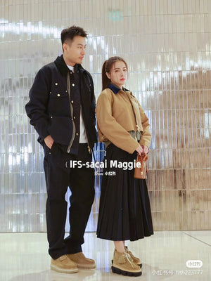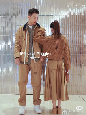 Sacai X Carhartt WIP FW23 Joint-Name Series FW23 Solid Color Belt Lace-up Placket Straight Cargo Pants Logging Pants