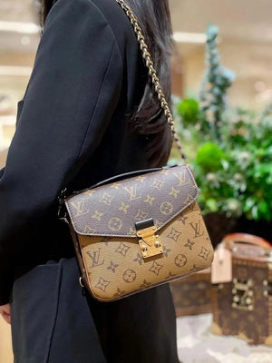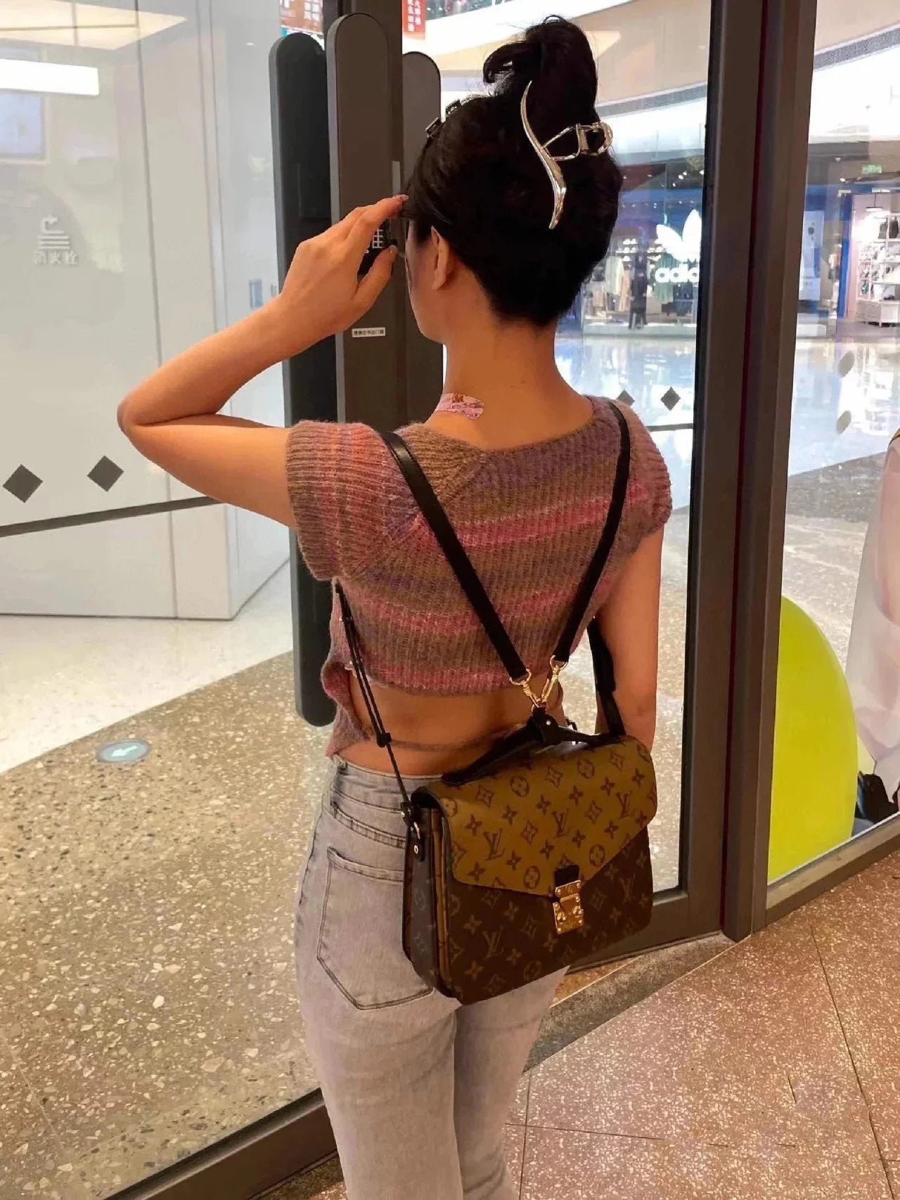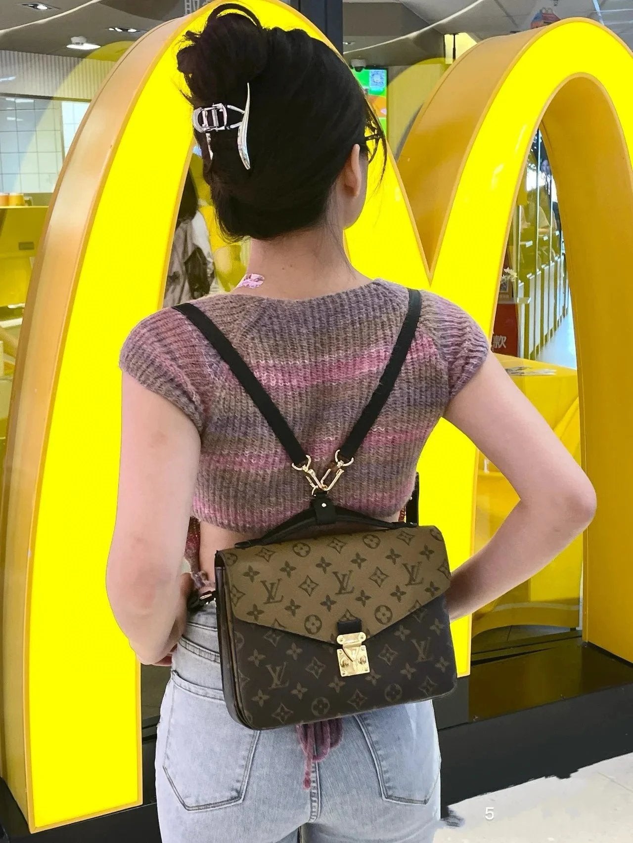 Louis Vuitton LV Backpack Top version 【MB Tax-Free Version】Dynamic Code Chip Version All-Steel Hardware2024New Women's Bag Color Matching Presbyopic Chain Bag Lock Backpack POCHETTEMÉTIS Messenger Bag Multi-Functional Preppy Style Backpack Shoulder Messen