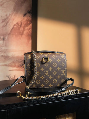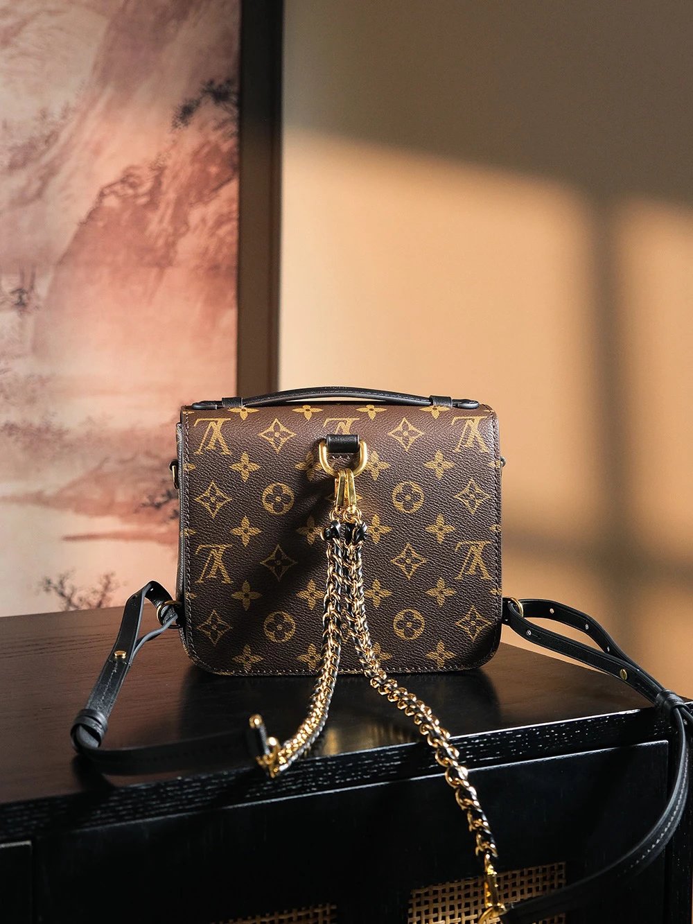 Louis Vuitton LV Women's Bag Top version 【MB Tax-Free Version】Dynamic Code Chip Version All-Steel Hardware2024New Women's Bag Color Matching Presbyopic Chain Bag Lock Backpack POCHETTEMÉTIS Messenger Bag Multi-Functional Preppy Style Backpack Shoulder Mes